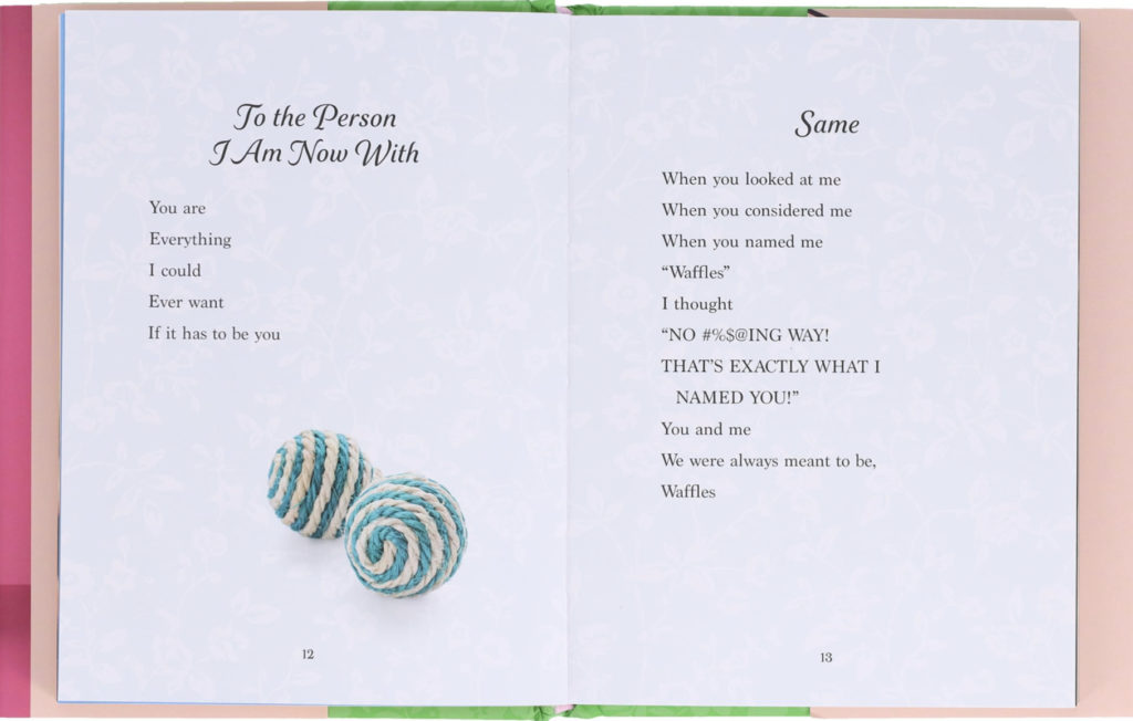 L’auteur de la série de poèmes humoristiques, best-seller international, aide les chats à mettre la patte sur le clavier pour exprimer la profondeur de leurs sentiments félins dans des odes aux petits déjeuners (à l’heure, s’il vous plaît !), aux tapis déchirés (c’est un signe d’affection !), à l’importance de faire le guet dans la salle de bains et à la boîte en carton parfaite dans laquelle est arrivé le nouveau lit pour chat, coûteux et totalement ignoré. Illustré par des photos de chats adorables et loufoques, ce livre est la combinaison parfaite d’humour et de gentillesse que tout chat sait être celle du grand amour.