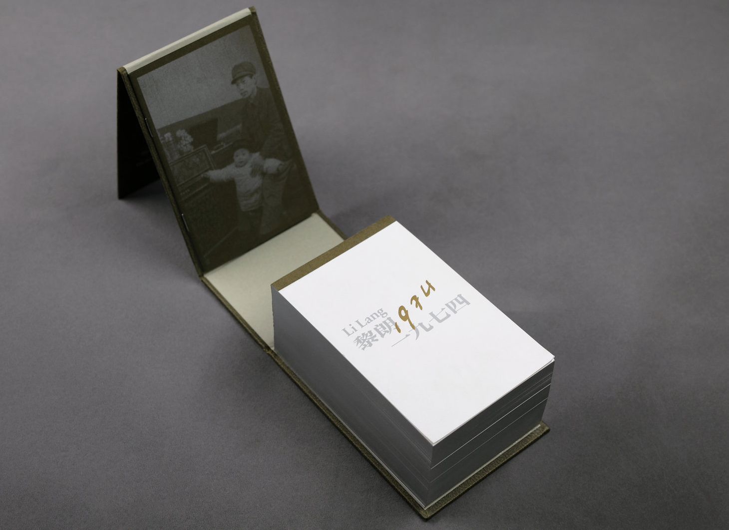 En tant qu’artiste travaillant principalement avec des images photographiques, Li Lang a inséré ses observations de l’histoire et des images dans la zone floue entre réalité et fiction, ainsi que ses réflexions sur les contradictions et les conflits entre eux. Les diapositives de “1974” proviennent de photographies d’époque qu’il a collectées au fil des ans auprès de différentes sources, notamment des portraits de studio, des photos de voyage, des instantanés de scènes de travail et de la vie quotidienne, etc. Après les avoir classées dans différentes catégories, Li les a étiquetées à la main avec dates basées sur une chronologie fictive. Ainsi, ces photographies d’époque sont retirées de leur contexte d’origine et deviennent ses métaphores de mémoire qui sont ensuite encadrées dans sa propre narration.