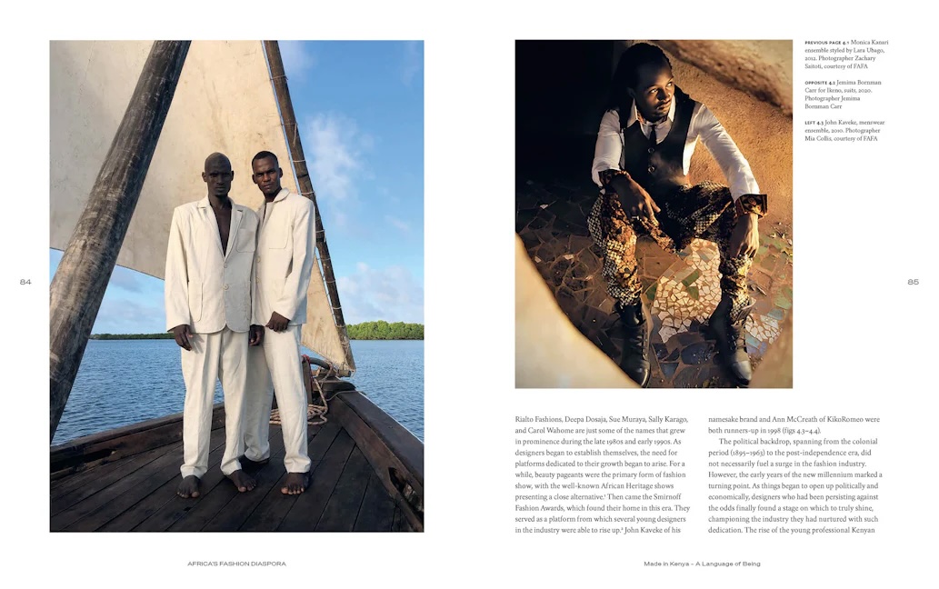 Retraçant l’impact local et mondial des créateurs noirs de la diaspora, Africa’s Fashion Diaspora est l’un des premiers ouvrages à explorer les diverses perspectives et les rôles significatifs que les créateurs noirs ont contribué à la création de la culture internationale de la mode. En mettant l’accent sur les XXe et XXIe siècles, cet ouvrage présente quelques-uns des meilleurs exemples de mode innovante tout au long de la période et met en contexte la manière dont le travail des créateurs de la diaspora peut aborder des questions contemporaines, notamment la décolonisation, la durabilité et l’équité sociale. Les créateurs diasporiques ne peuvent être définis de manière monolithique, ils sont issus de cultures variées et leurs œuvres témoignent de leurs expériences personnelles, ainsi que d’un large éventail d’influences.