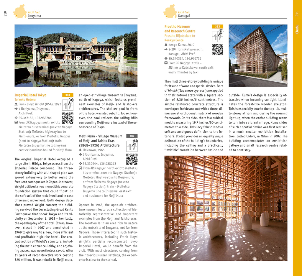 Aujourd’hui, l’architecture contemporaine japonaise est admirée peut-être autant que son homologue traditionnelle, avec laquelle elle entretient souvent un dialogue significatif. Japan Architectural Guidede Botond Bognar présente près de 700 exemples parmi les plus marquants de cette architecture fertile, tout en décrivant son évolution depuis le milieu du XIXe siècle jusqu’à aujourd’hui dans un essai historique concis.