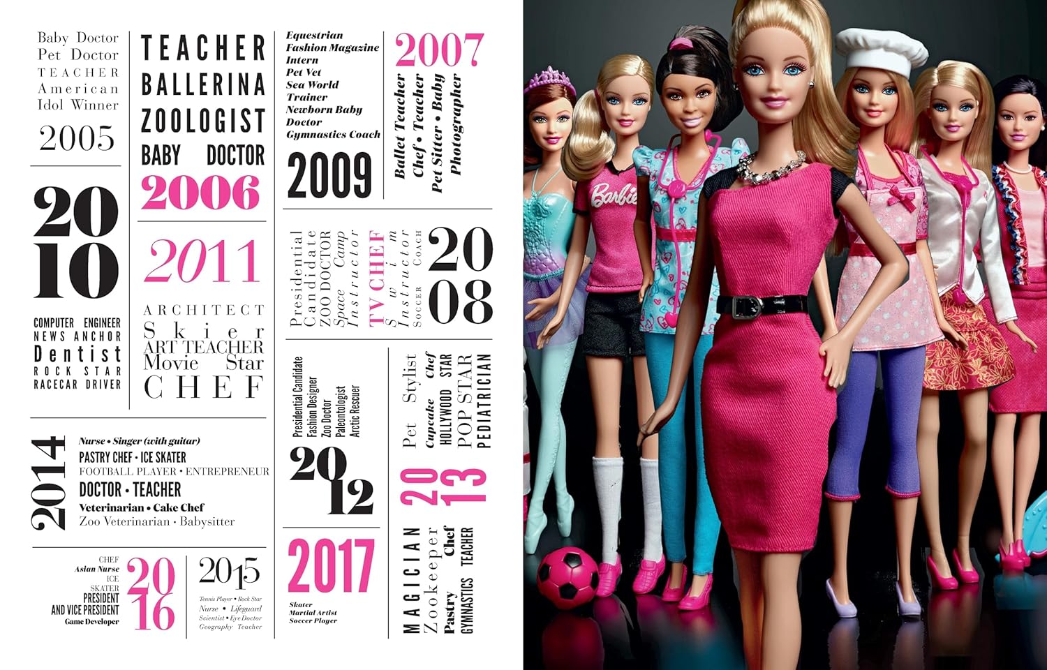 Dans ce livre, à travers cinq sections et une chronologie actualisée (1959-2024), Barbie nous aide à réinterpréter les tendances sociales et esthétiques qui ont exercé leur influence des années 1950 à nos jours à travers l’histoire, la mode, la société, l’art et le costume.