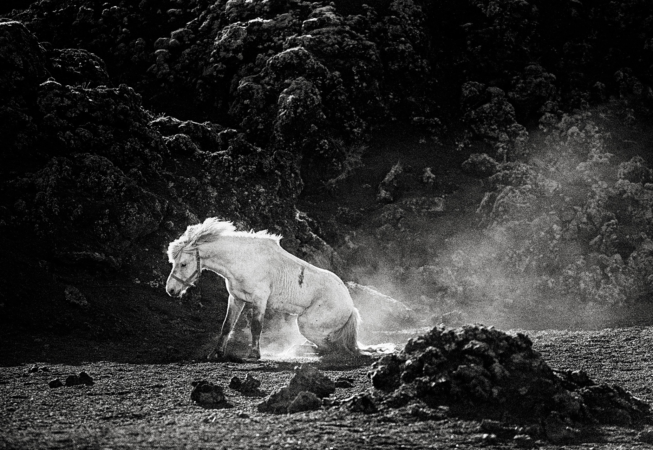 Dans sa troisième publication chez Kehrer Verlag, Axelsson présente des photographies en noir et blanc puissantes et atmosphériques qui documentent de manière impressionnante l’interaction entre les hommes et leurs animaux, ainsi qu’avec le paysage accidenté. De majestueuses collines ondulantes, assiégées par des tempêtes de neige et de pluie rugissantes, des roches de lave rugueuses et des formations rocheuses massives donnent une image réaliste et convaincante du lien extraordinaire entre l’homme et la nature.