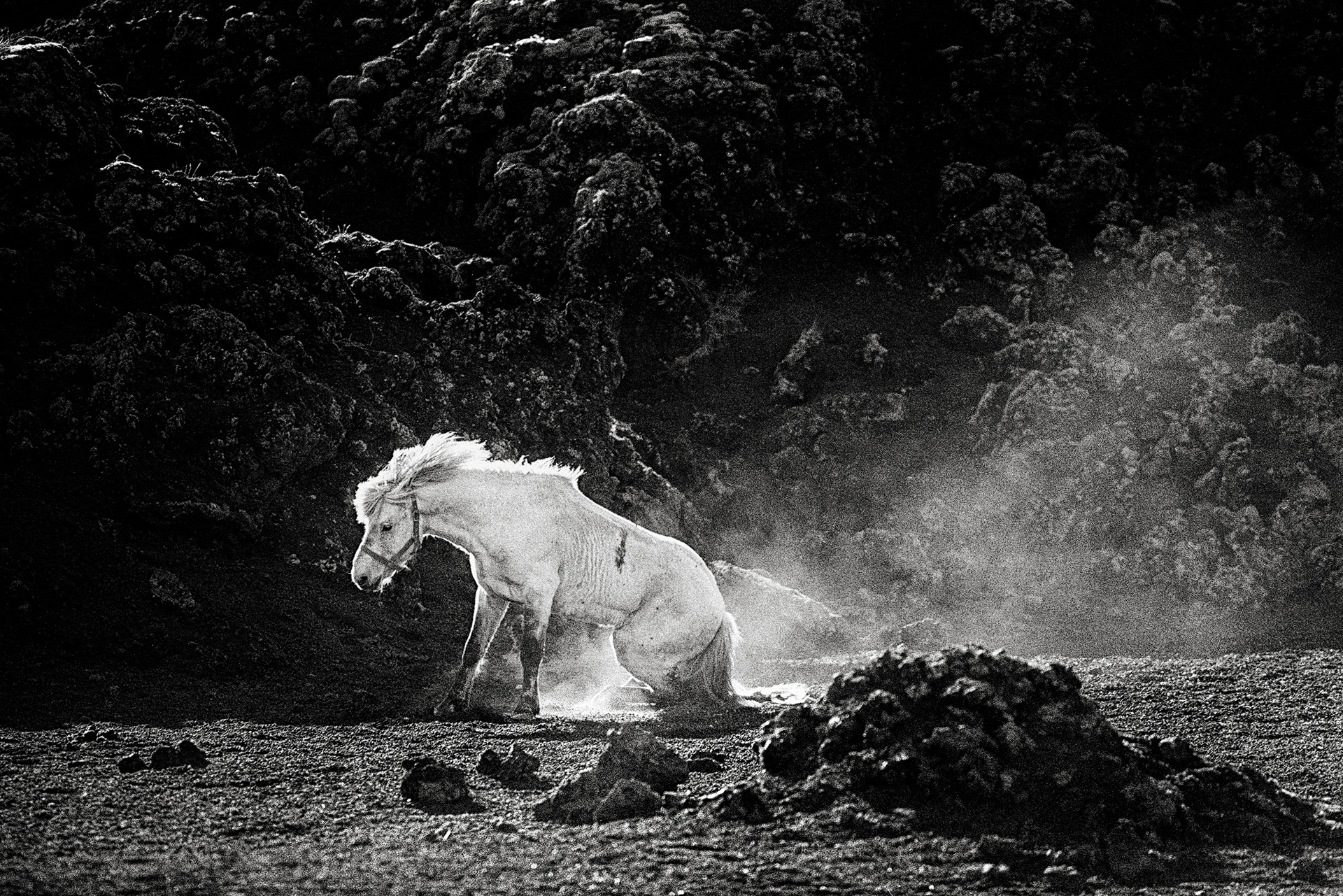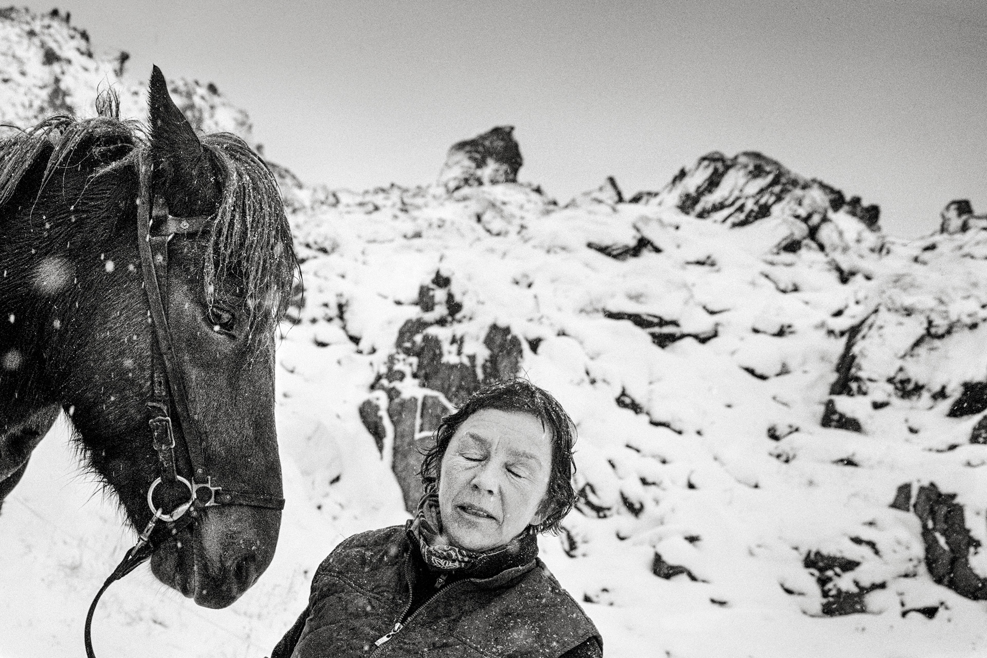 Dans sa troisième publication chez Kehrer Verlag, Axelsson présente des photographies en noir et blanc puissantes et atmosphériques qui documentent de manière impressionnante l’interaction entre les hommes et leurs animaux, ainsi qu’avec le paysage accidenté. De majestueuses collines ondulantes, assiégées par des tempêtes de neige et de pluie rugissantes, des roches de lave rugueuses et des formations rocheuses massives donnent une image réaliste et convaincante du lien extraordinaire entre l’homme et la nature.