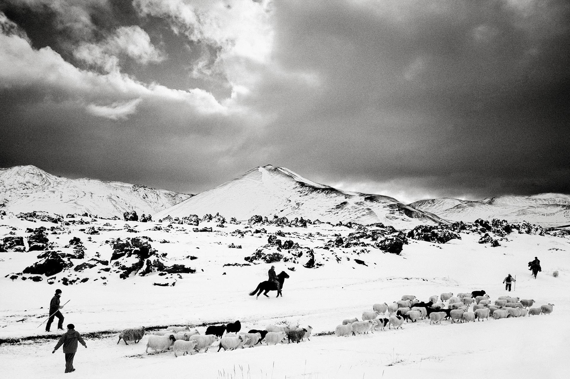 Depuis quarante-cinq ans, le photographe islandais Ragnar Axelsson observe les fermiers de son pays lors des rassemblements de moutons. Cette tradition séculaire a lieu chaque automne et se déroule souvent à cheval ou à pied.