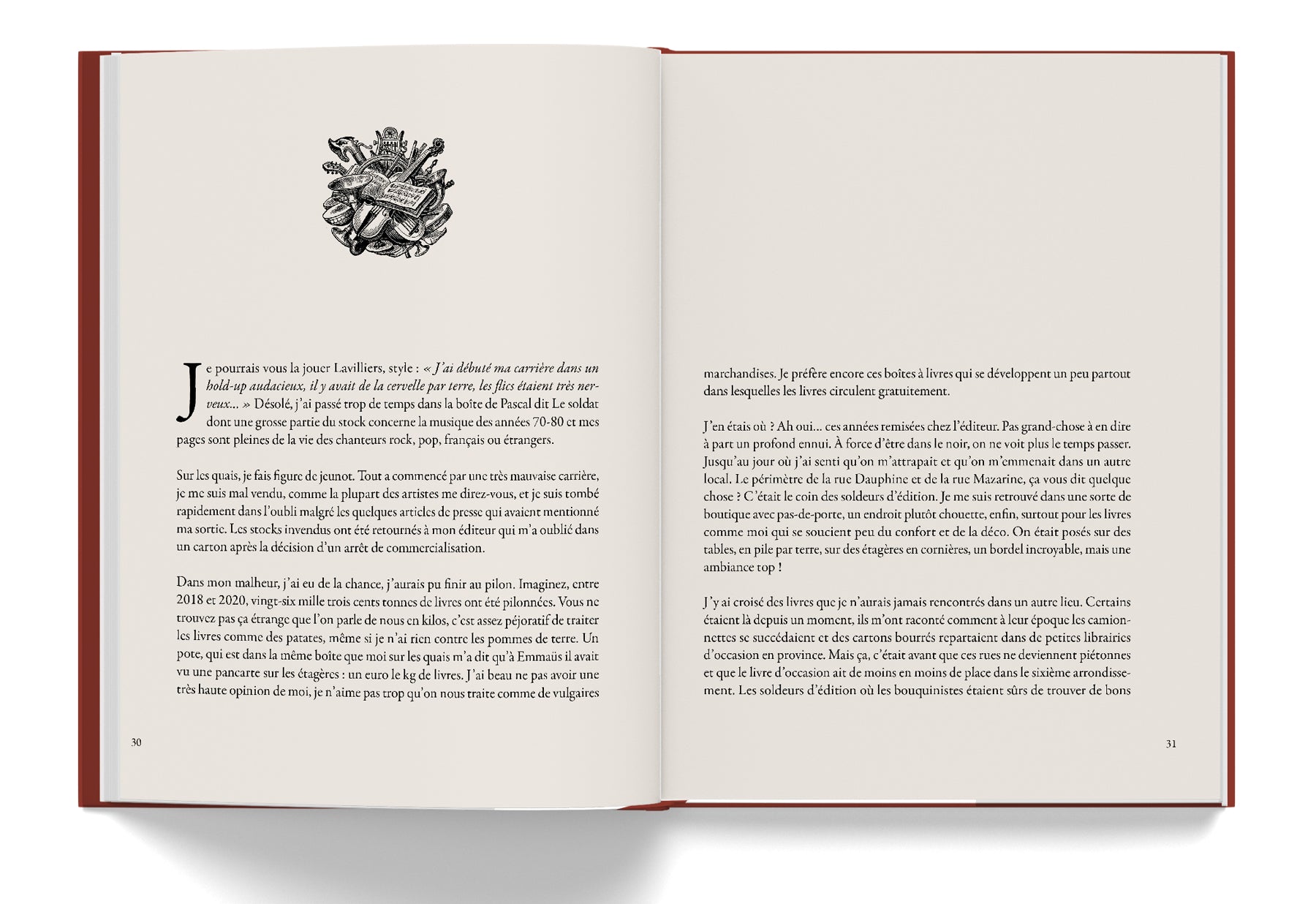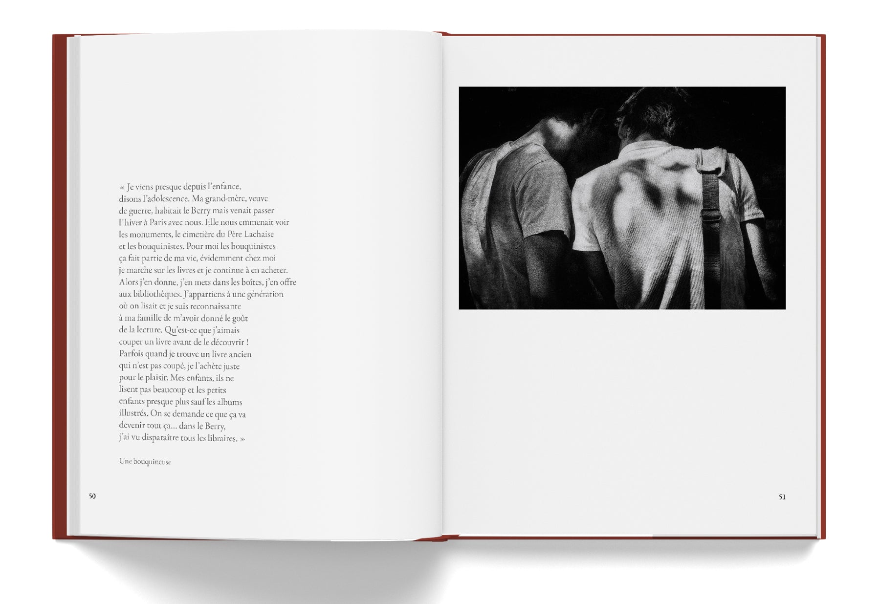 Depuis quelques années, Irène Jonas rencontre les bouquinistes des quais de Seine, leur histoire, leur vie quotidienne et, depuis un an, leurs interrogations face à leur déménagement programmé pour les Jeux olympiques d’été à Paris en 2024. Bouquinistes de Paris est le fruit de ce travail au long cours : extraits d’entretiens et textes documentaires ou historiques se succèdent à des photographies noir et blanc empreintes de mystère et de la nostalgie d’un Paris révolu.