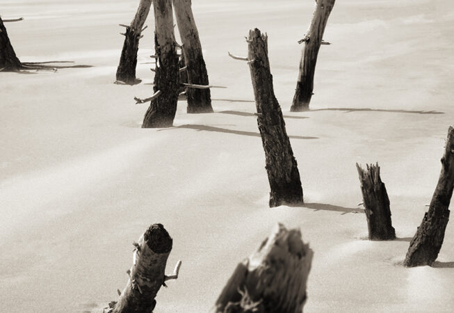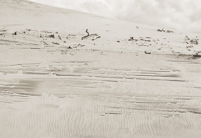 La mer y est, par ailleurs, une figure centrale et ambivalente. Elle est à la fois refuge et sentence, force de vie et puissance d’effacement. Elle roule, déroule et fait mal. Elle exige. Elle prend goût à l’incrédulité des hommes, à l’odeur du désastre. Les vagues ne connaissent, en outre, ni le sommeil des justes ni le repos des combattants. Ce sont ces rivages perdus, espaces entre le monde des vivants et celui de la dissolution, que Guichard choisit ainsi de photographier.
