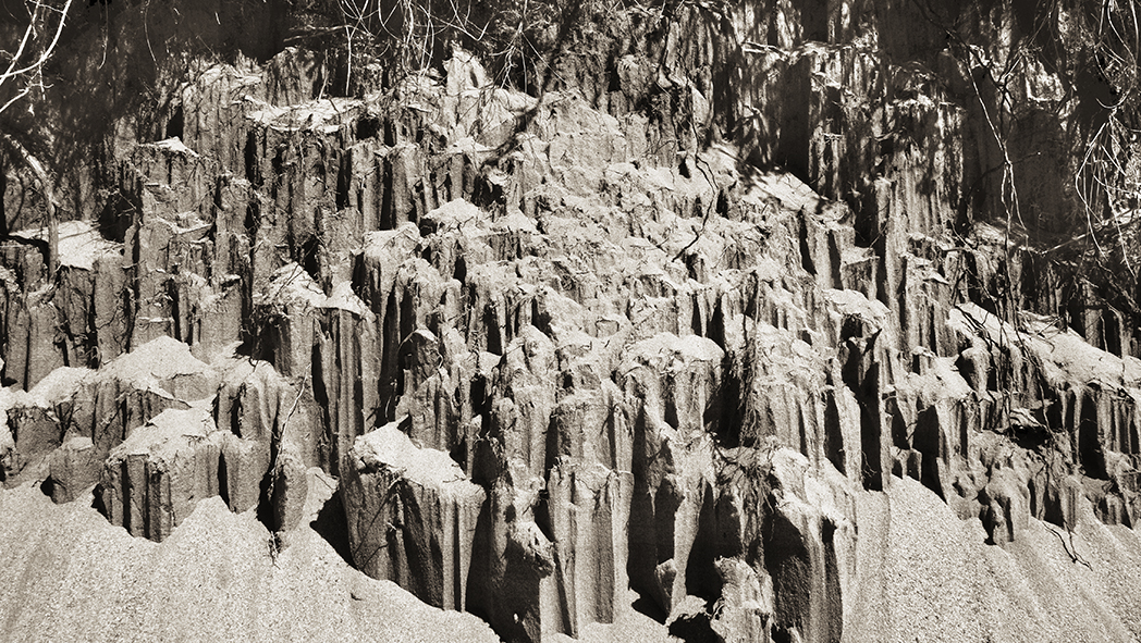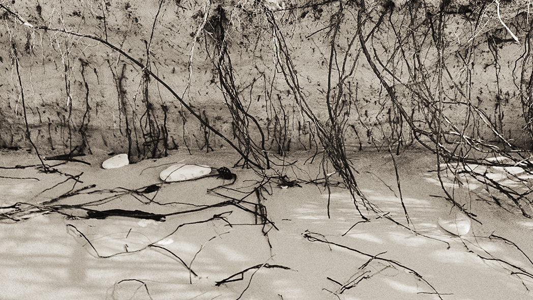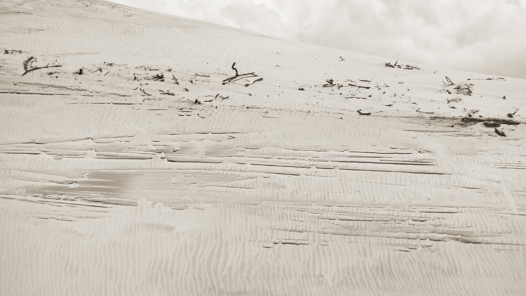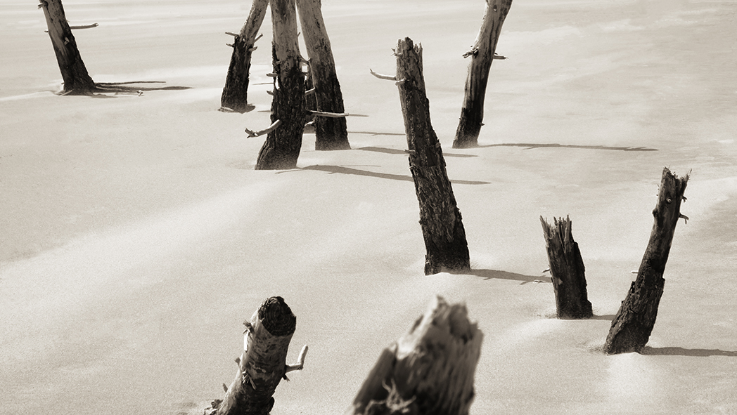 La mer y est, par ailleurs, une figure centrale et ambivalente. Elle est à la fois refuge et sentence, force de vie et puissance d’effacement. Elle roule, déroule et fait mal. Elle exige. Elle prend goût à l’incrédulité des hommes, à l’odeur du désastre. Les vagues ne connaissent, en outre, ni le sommeil des justes ni le repos des combattants. Ce sont ces rivages perdus, espaces entre le monde des vivants et celui de la dissolution, que Guichard choisit ainsi de photographier.