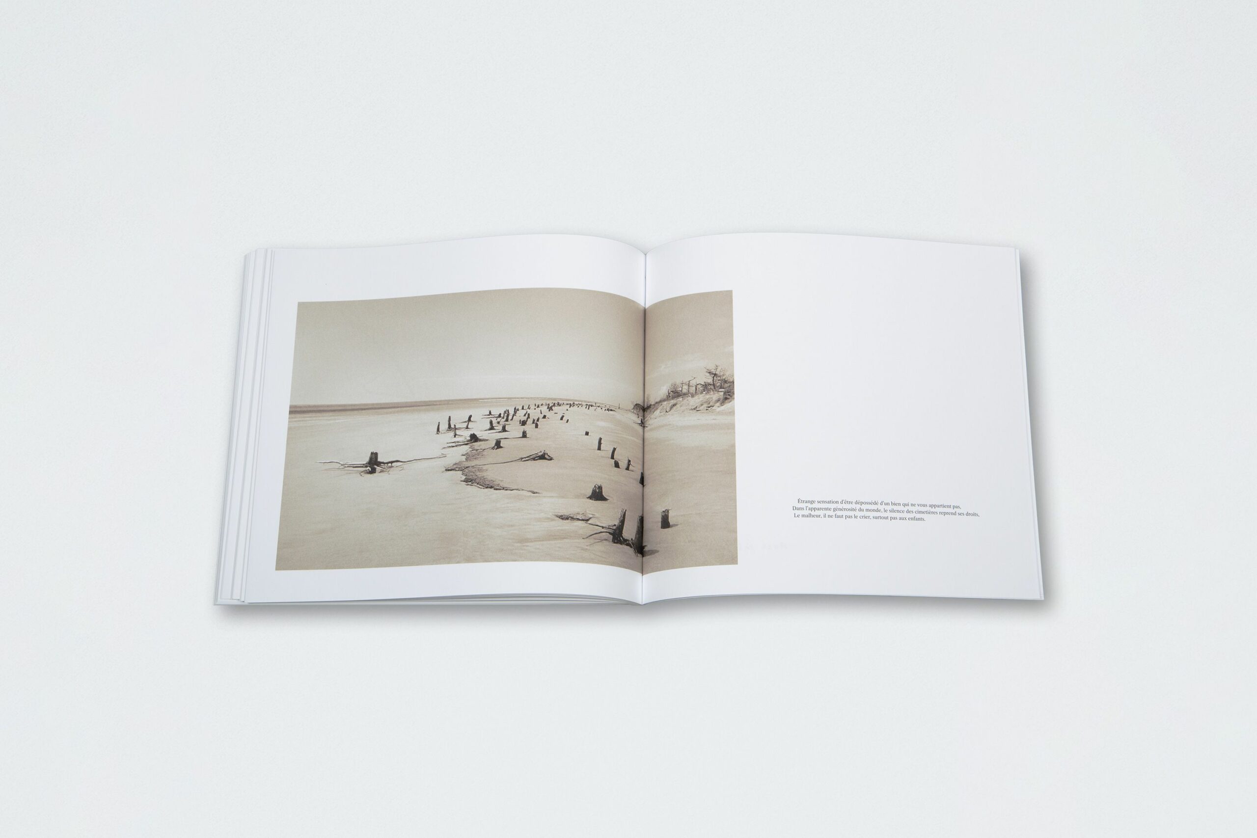 Le texte qui traverse le livre est une suite poétique dense et sombre. Il interroge la responsabilité de l’homme face à la nature, la finitude humaine et la possibilité d’une rédemption. Les hommes ont, de plus, la mémoire des criminels. La mer, elle, n’oublie pas. Elle se change en une autre mer et une autre encore. C’est pourquoi ce livre est autant un acte poétique qu’un livre de photographies. Il incarne, enfin, une vision de la mer comme miroir de la condition humaine.
