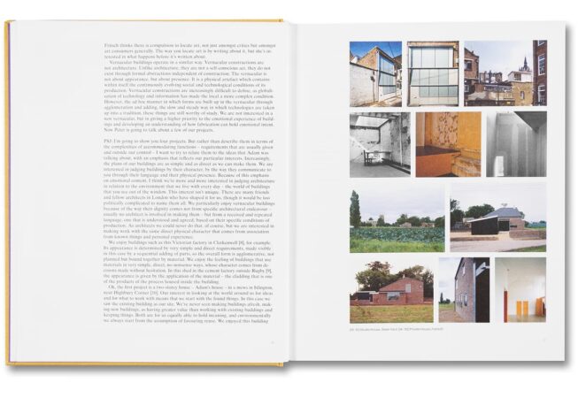 Ces éléments s’accompagnent d’inventaires de références issues de l’architecture et de l’art contemporain. Le livre rassemble, de plus, des textes nouveaux et d’archives qui éclairent la vision du cabinet. Des projets plus confidentiels, comme les réitérations successives de la maison de Peter St John à Orleston Mews ou le système de signalétique pour le quartier Bankside à Londres, dialoguent avec des bâtiments plus connus. La structure ouverte et réflexive du volume offre, en outre, à la fois une introduction accessible et une constellation d’idées croisées. C’est pourquoi ce livre incarne la conviction centrale du cabinet : le monde contemporain ne se compose pas uniquement du nouveau, mais de tout ce qui l’a précédé.
