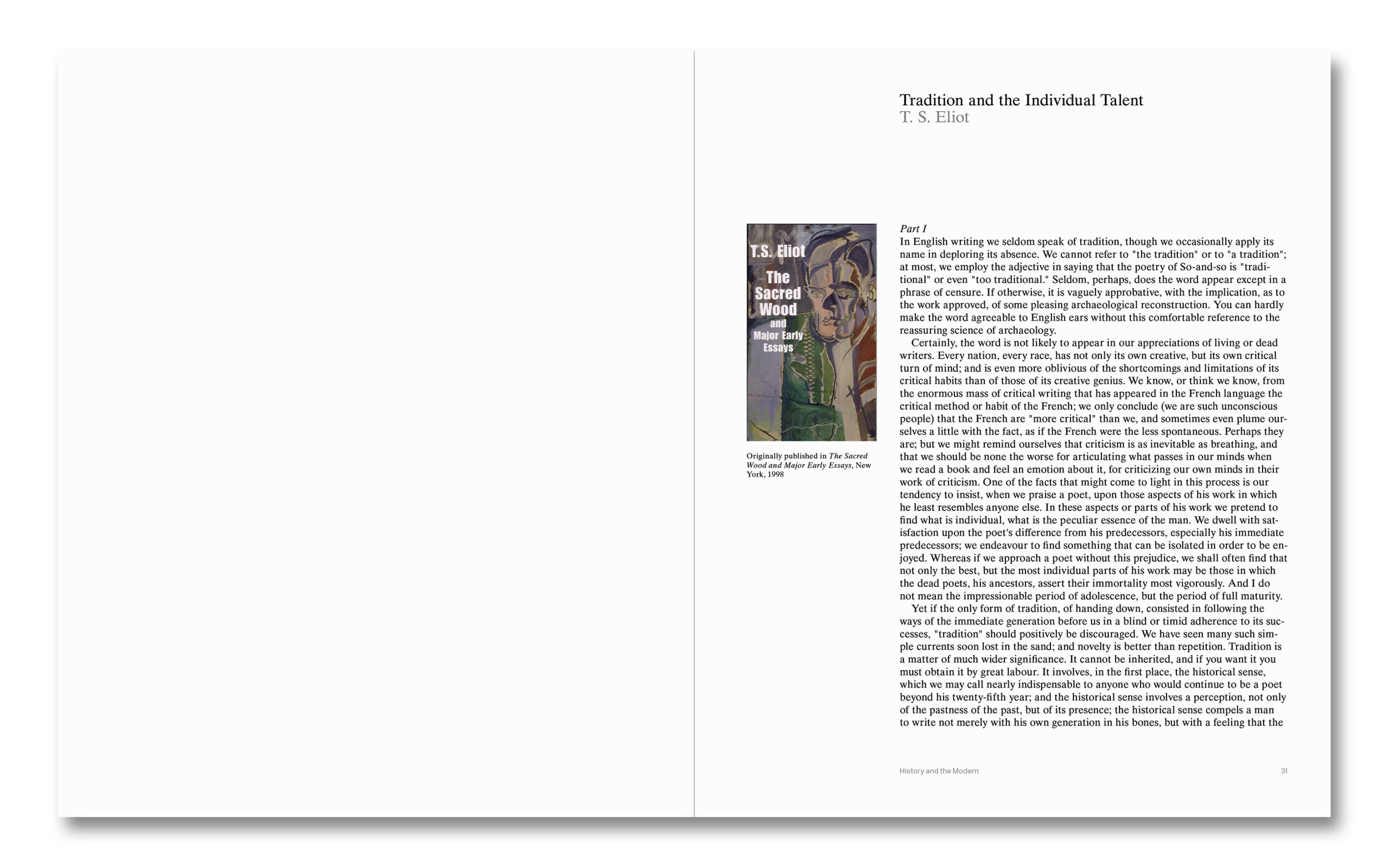 L’environnement culturel de cette période est, enfin, restitué à travers des essais et des textes variés : de T.S. Eliot à Rosalind Krauss en passant par Louis Sullivan. C’est pourquoi ce livre constitue une invitation à prêter attention à l' »alchimie du quotidien ».