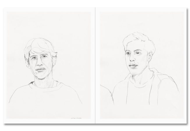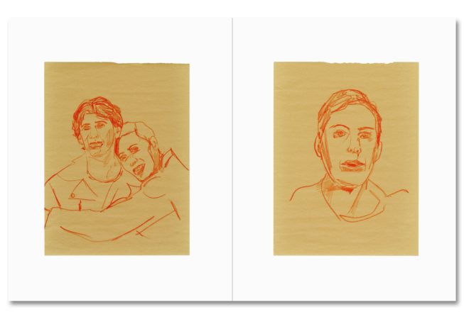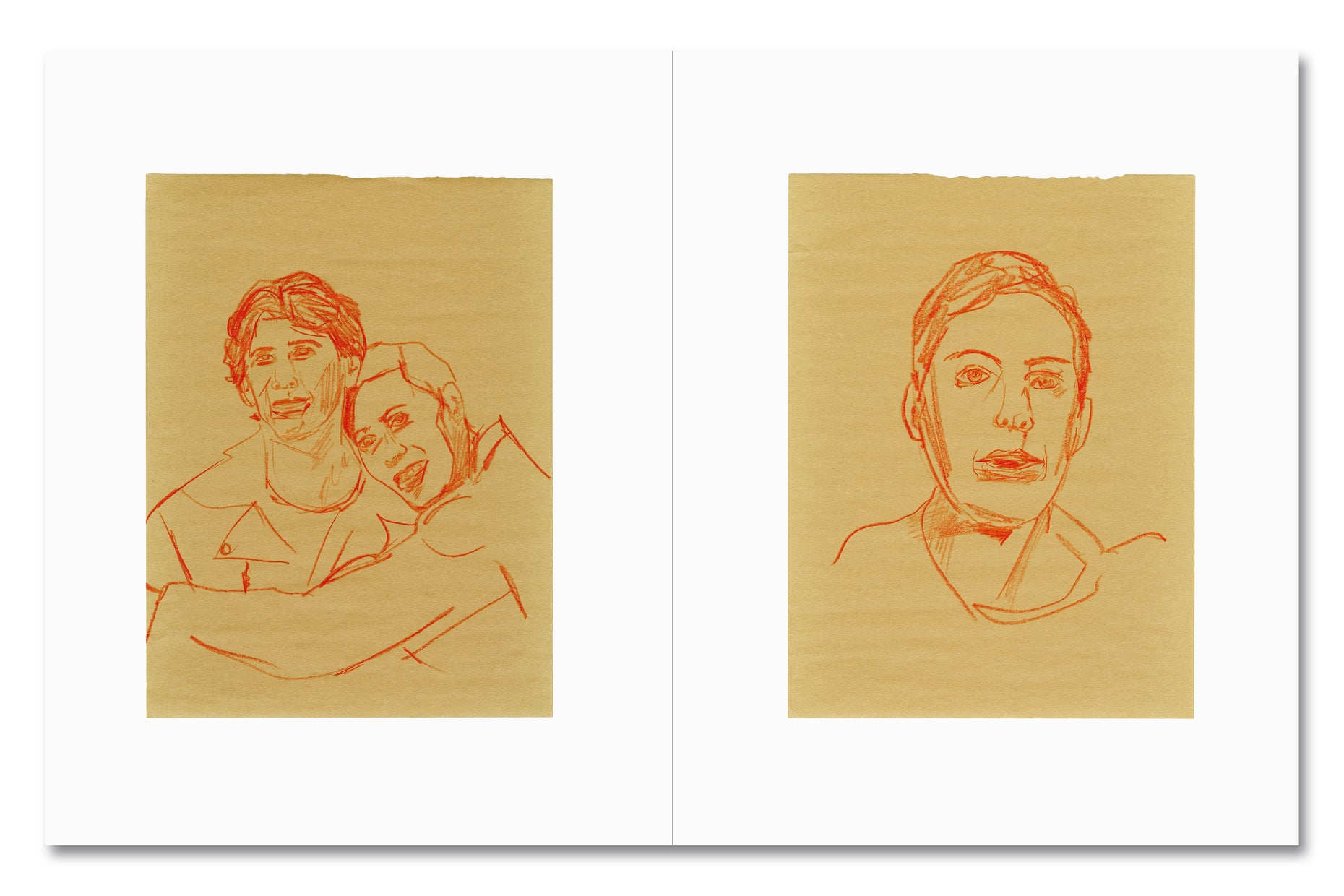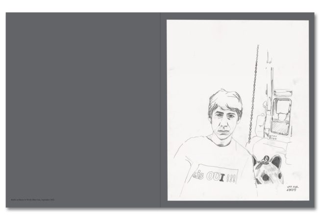 Collier Schorr a commencé à dessiner des photographies qu’elle avait prises de l’artiste Nicole Eisenman en 2020, une pratique solitaire qui trouve son origine dans la fascination du sosie et la possibilité de voir son propre visage dans un autre. Bien que Schorr et Eisenman se connaissent depuis les années 1980, les photographies utilisées sont récentes, aussi bien formelles que les prises de vue pour T Magazine et le New Yorker, que désinvoltes comme les selfies pris dans les cafés de quartier et les visites de studio. Ce volume, structuré selon le style narratif unique de Schorr, rassemble des portraits dessinés, des selfies et des autoportraits, à la fois mis en scène et candides, dans des espaces reconnaissables et qui émergent de la page blanche.