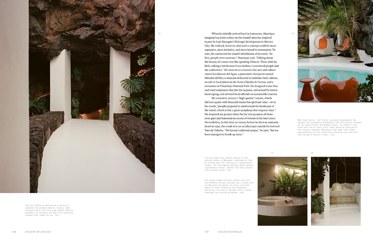 Molly Mandell et James Burke, deux habitants du désert texan, sont partis à la recherche de plus de trente espaces incroyables et ont appris à connaître les personnes qui les ont créés. En termes de superficie, les déserts représentent un tiers de la masse continentale de la Terre. Mandell et Burke avaient donc beaucoup de chemin à parcourir, passant par le sud-ouest des États-Unis, le Mexique et l’Argentine, et traversant l’océan pour se rendre en Égypte, au Maroc, en Espagne et en Jorda-nie. Ils se sont aventurés en Inde et dans un micro-désert en Nouvelle-Zélande. Ils ont visité des hauts et des bas déserts, des déserts urbains et des déserts ruraux, des déserts sablonneux et des déserts broussailleux. Ils ont tout photographié, des espaces désertiques emblématiques, comme ceux habités par Yves Saint Laurent, César Manrique et Donald Judd, tout en interviewant les chorégraphes, les hôteliers, les sculpteurs, les écologistes, les chefs, les ingénieurs du son, les défenseurs de l’environnement et bien d’autres encore qui ont créé ces lieux remarquables.
