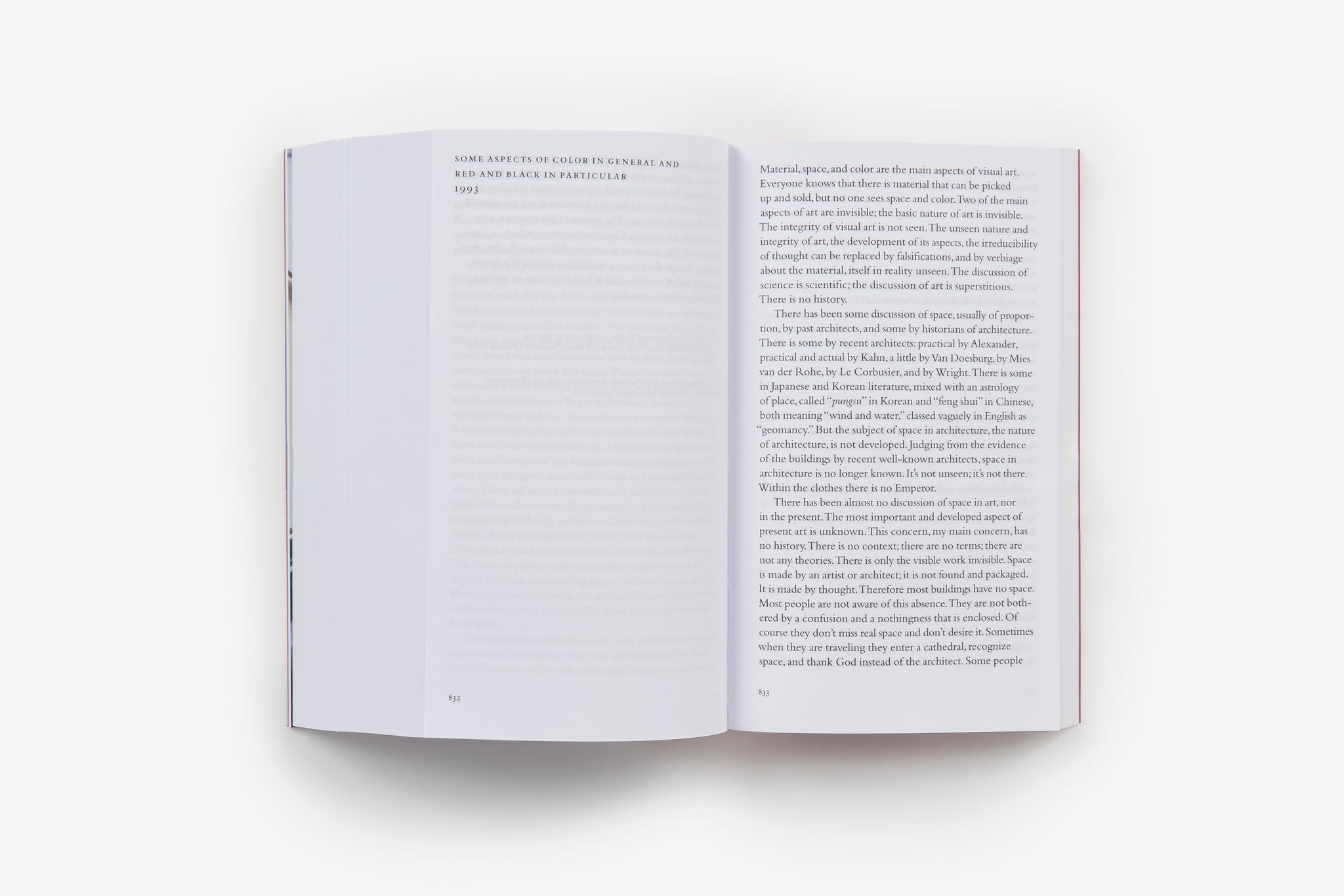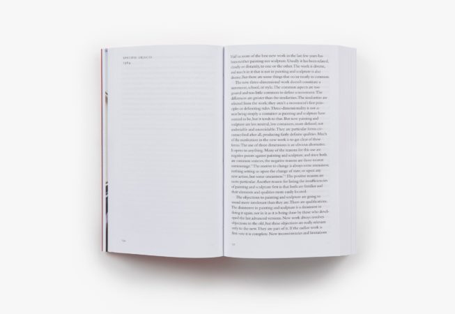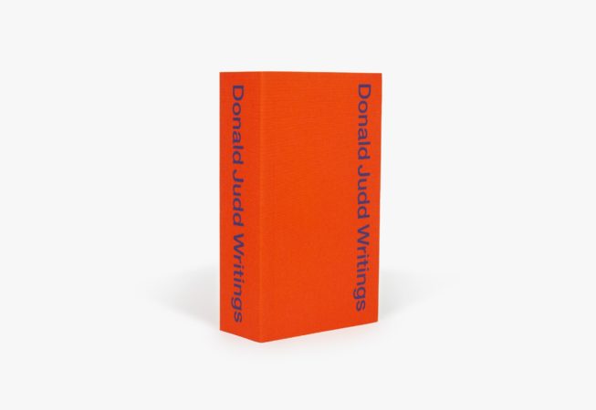 Donald Judd Writings est la collection la plus complète d’écrits de l’artiste rassemblée à ce jour, comprenant les essais les plus connus de Judd, des textes peu connus, des manuscrits inédits et des lettres.