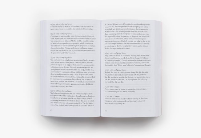 Dans ces réflexions intimes, nous voyons la pensée de Judd à son niveau le moins médiatisé, un esprit qui continue à se débattre avec les questions de son temps, à y réfléchir, à changer de position et à faire preuve de l’intensité de pensée qui continue à faire de Judd une présence si formidable dans l’art visuel contemporain.