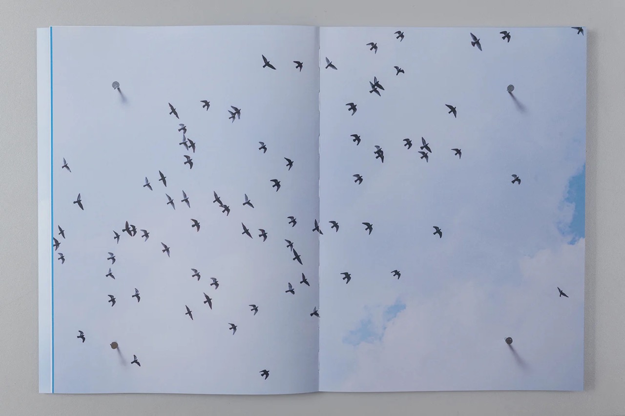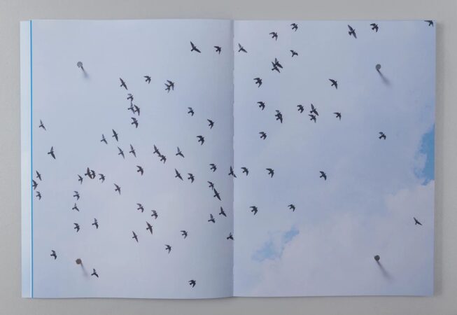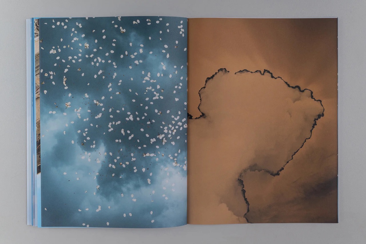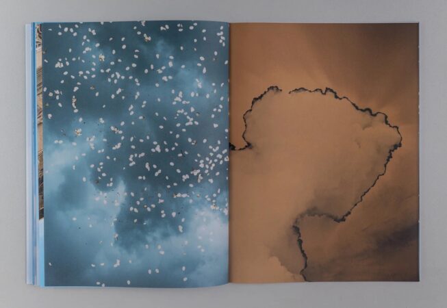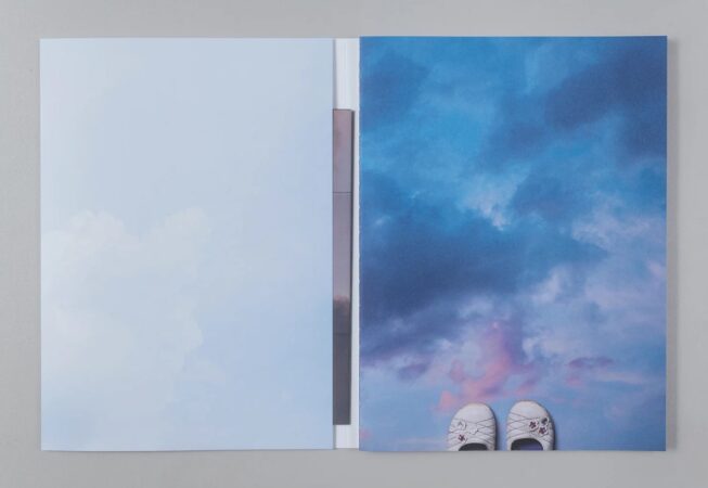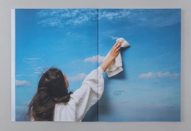 Loin de sa perception ordinaire, le ciel devient ici une expérience intérieure : fugitivement accessible, toujours insaisissable. Ainsi, nourri de souvenirs d’enfance – boules de neige lancées vers les nuages, regard levé en quête du divin – Żak confronte ces imaginaires précoces à son regard d’artiste adulte. Par ailleurs, le livre s’articule autour d’une double signification du ciel : étendue physique infinie d’un côté, royaume métaphysique traditionnellement associé au divin de l’autre. Entre ces deux pôles, l’artiste installe donc une tension poétique qui traverse l’ensemble de l’ouvrage.