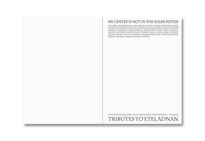 MY CENTER IS NOT IN THE SOLAR SYSTEM: Tributes to Etel Adnan