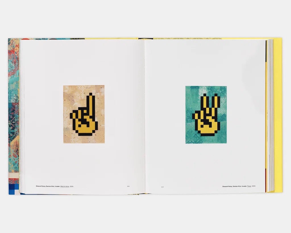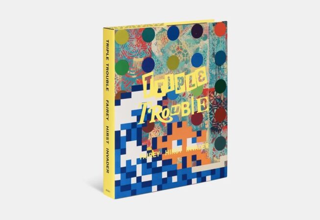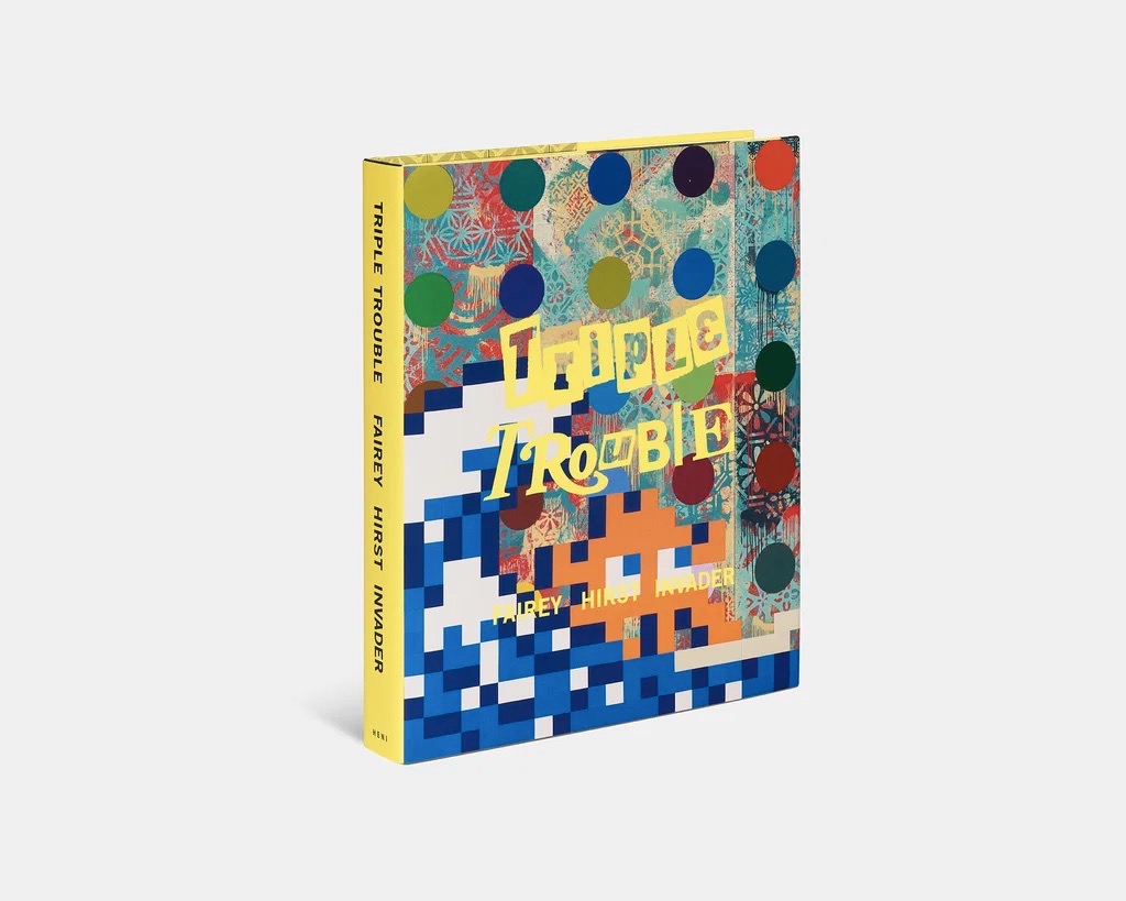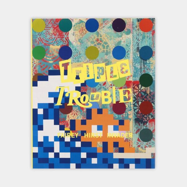 Triple Trouble est le catalogue officiel de la grande exposition présentée à la Newport Street Gallery de Londres du 10 octobre 2025 au 29 mars 2026. Fairey Hirst Invader exposition réunit, en effet, des œuvres individuelles et collaboratives de Shepard Fairey, Damien Hirst et Invader, trois figures majeures à l’intersection de l’art contemporain, de la culture urbaine et de l’iconographie pop.