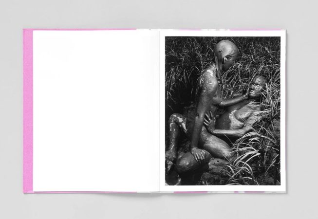 Ce livre couvre les deux premières années de la transition de Pia, alors qu’elle photographie sa communauté et l’hostilité et la beauté de la vie ici. Des photographies de papillons de nuit et de soie d’araignée incandescente, de corps imbibés de boue entrelacés, d’une maison en feu, d’animaux nocturnes, de famille, d’amis, d’amants et de rituels minutieux ornent des paysages inondés d’éclairs. Flowers Drink the River est une quête de beauté et d’évasion, de résistance, de sécurité et de magie.