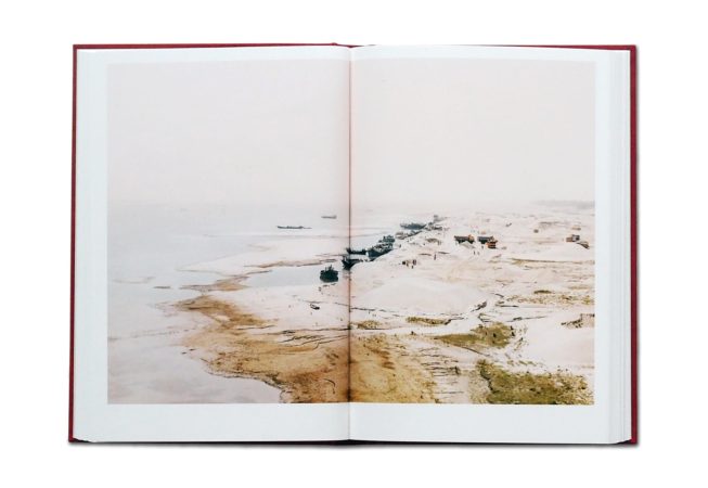 L’utilisation du moyen format par Gulio Di Sturco lui a permis de ralentir les choses, de se rapprocher de ses sujets et de permettre un niveau élevé de détail et de précision des couleurs. Les photographies du livre combinent une réponse esthétique et picturale au teint et à l’atmosphère du Gange avec des éléments du détachement observationnel de la photographie documentaire. Les points d’observation des vues panoramiques du livre montrent les structures artificielles telles que les ponts ou l’architecture illégale de l’exploitation du sable, et font écho à la tradition de la peinture de paysage épique. Ces images sont combinées avec des photographies prises sur les rives du fleuve, illustrant les effets de l’industrialisation à l’échelle humaine. Le livre comprend des textes de l’auteur et activiste environnemental, le Dr Vandana Shiva, et le conservateur Eimear Martin.