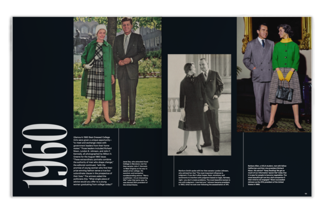 Glamour a été le premier magazine de mode américain à présenter une star noire en couverture, Katiti Kironde, et le premier à mettre le mannequin Beverly Johnson en couverture (elle y a figuré 15 fois de plus). Il a été l’un des premiers à présenter les écrits de Gloria Steinem et à publier les illustrations d’Andy Warhol. Les présidents Reagan, Kennedy, Johnson, Nixon, Bush et Obama ont tous figuré ou contribué à Glamour. Ses reportages courageux sur les droits en matière de procréation ont été récompensés par de nombreux prix prestigieux. Au cours d’un voyage captivant, suivez quelques-unes des rédactrices en chef et des journalistes qui ont mené le magazine à devenir, selon les termes de Condé Nast lui-même, “un périodique consacré à… la vie de notre époque».
