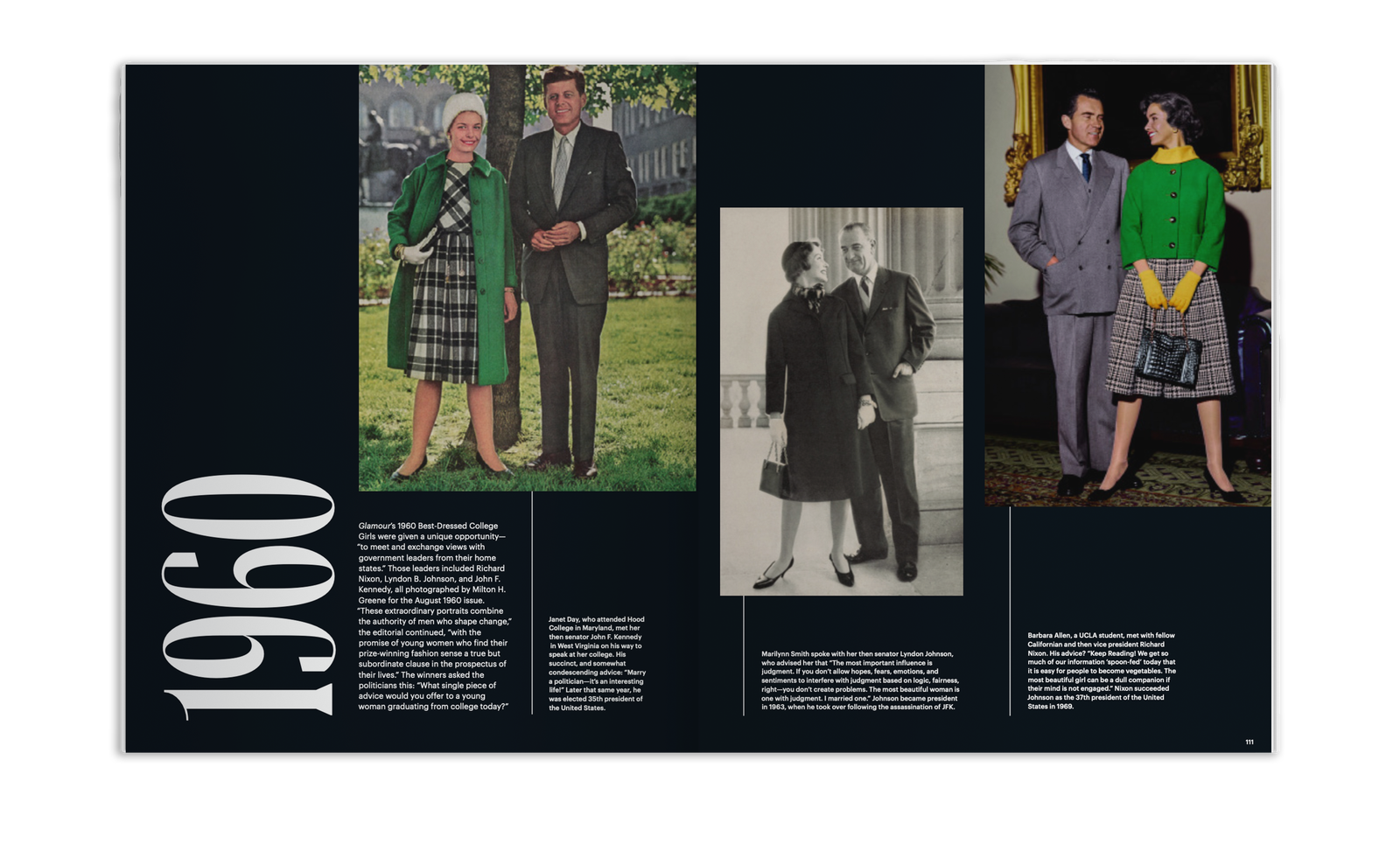 Glamour a été le premier magazine de mode américain à présenter une star noire en couverture, Katiti Kironde, et le premier à mettre le mannequin Beverly Johnson en couverture (elle y a figuré 15 fois de plus). Il a été l’un des premiers à présenter les écrits de Gloria Steinem et à publier les illustrations d’Andy Warhol. Les présidents Reagan, Kennedy, Johnson, Nixon, Bush et Obama ont tous figuré ou contribué à Glamour. Ses reportages courageux sur les droits en matière de procréation ont été récompensés par de nombreux prix prestigieux. Au cours d’un voyage captivant, suivez quelques-unes des rédactrices en chef et des journalistes qui ont mené le magazine à devenir, selon les termes de Condé Nast lui-même, “un périodique consacré à… la vie de notre époque».