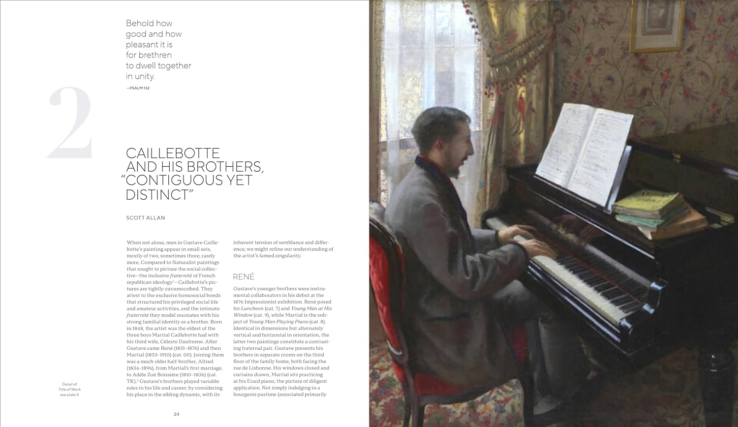 En explorant les facettes complexes et variées de l’identité de Caillebotte – fils, frère, soldat, célibataire, sportif amateur, etc. -, ces essais posent des questions sur l’identité, laissant place à des expressions ambiguës et fluides du genre et de la masculinité, tant pour Caillebotte que pour le monde français de la fin du XIXe siècle.