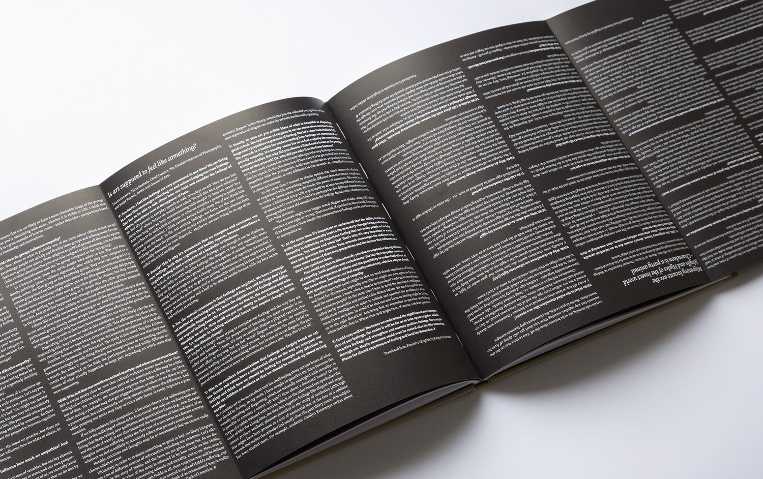 Textes composés de conversations entre l’artiste Maija Tammi, la conservatrice en chef du Musée finlandais de la photographie Tiina Rauhala, le Dr Marius Vollberg, spécialiste en psychologie et en neu-rosciences, Kristiina Koskinen, docteur ès lettres, et Joni Ollonen, titulaire d’une maîtrise en sciences et chercheur doctorant. Hulda / Lilli a été créé dans le contexte de l’œuvre Empathy Machine qui a été présentée pour la première fois lors de l’exposition personnelle de Tammi au Musée finlandais de la photographie en mars 2023