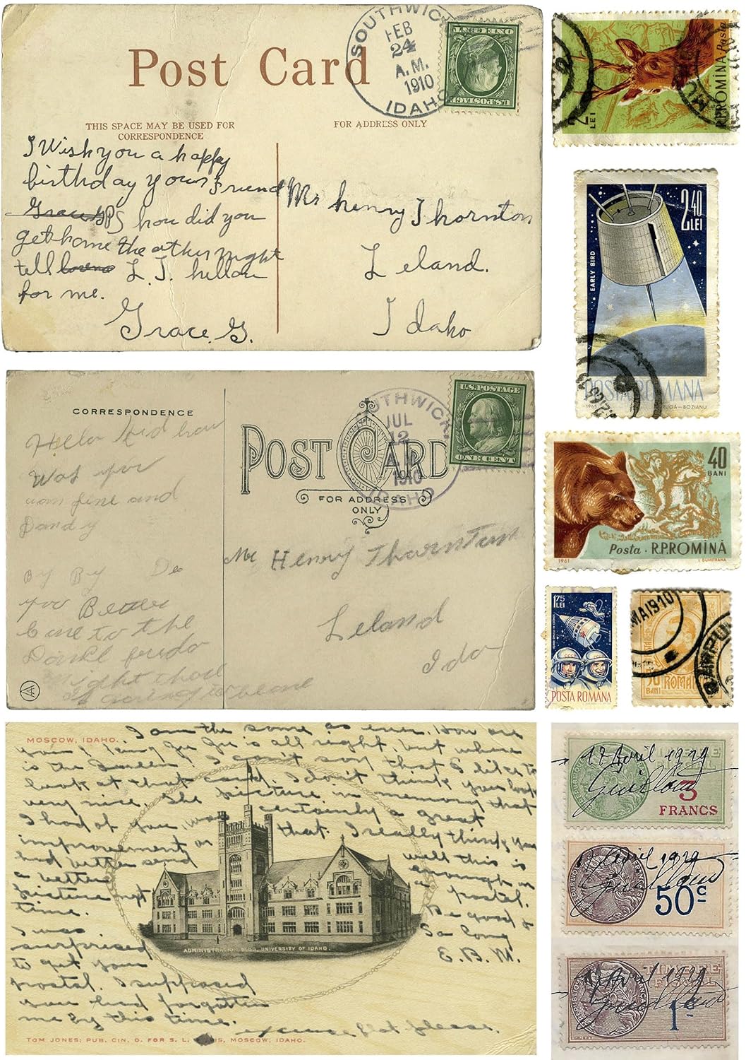• 9 textures : du papier ancien, des factures, des cartes postales et de la correspondance vintage qui ajoutent de la profondeur et du caractère.