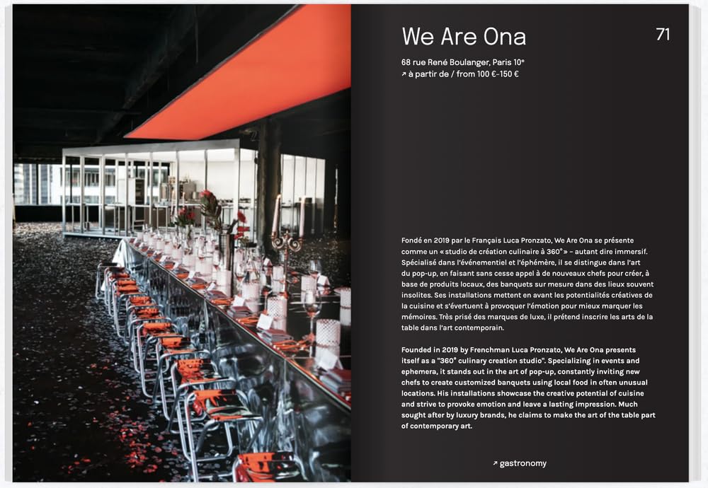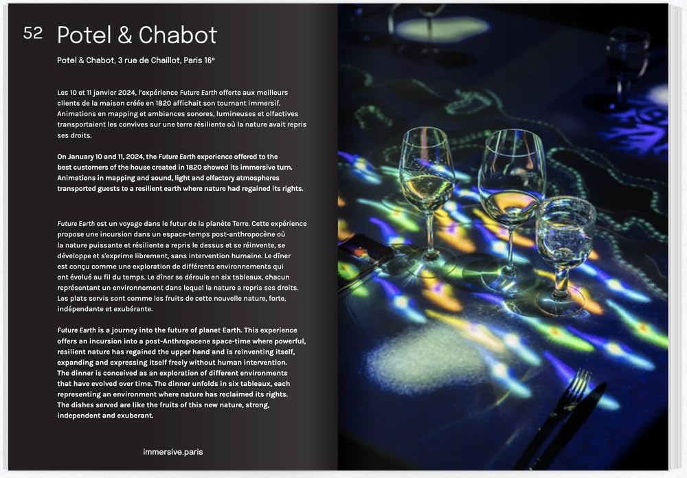 Dans ce premier volume découvrez le futur de la gastronomie. Explorez des restaurants uniques où théâtre, innovation et art de vivre se rencontrent pour créer des expériences captivantes. Plongez dans l’univers de designers pionniers, de chefs primés, de directeurs artistiques et de scientifiques qui vous emmènent à travers leurs aventures créatives et entrepreneuriales inspirantes, en descendant dans le terrier du lapin.
