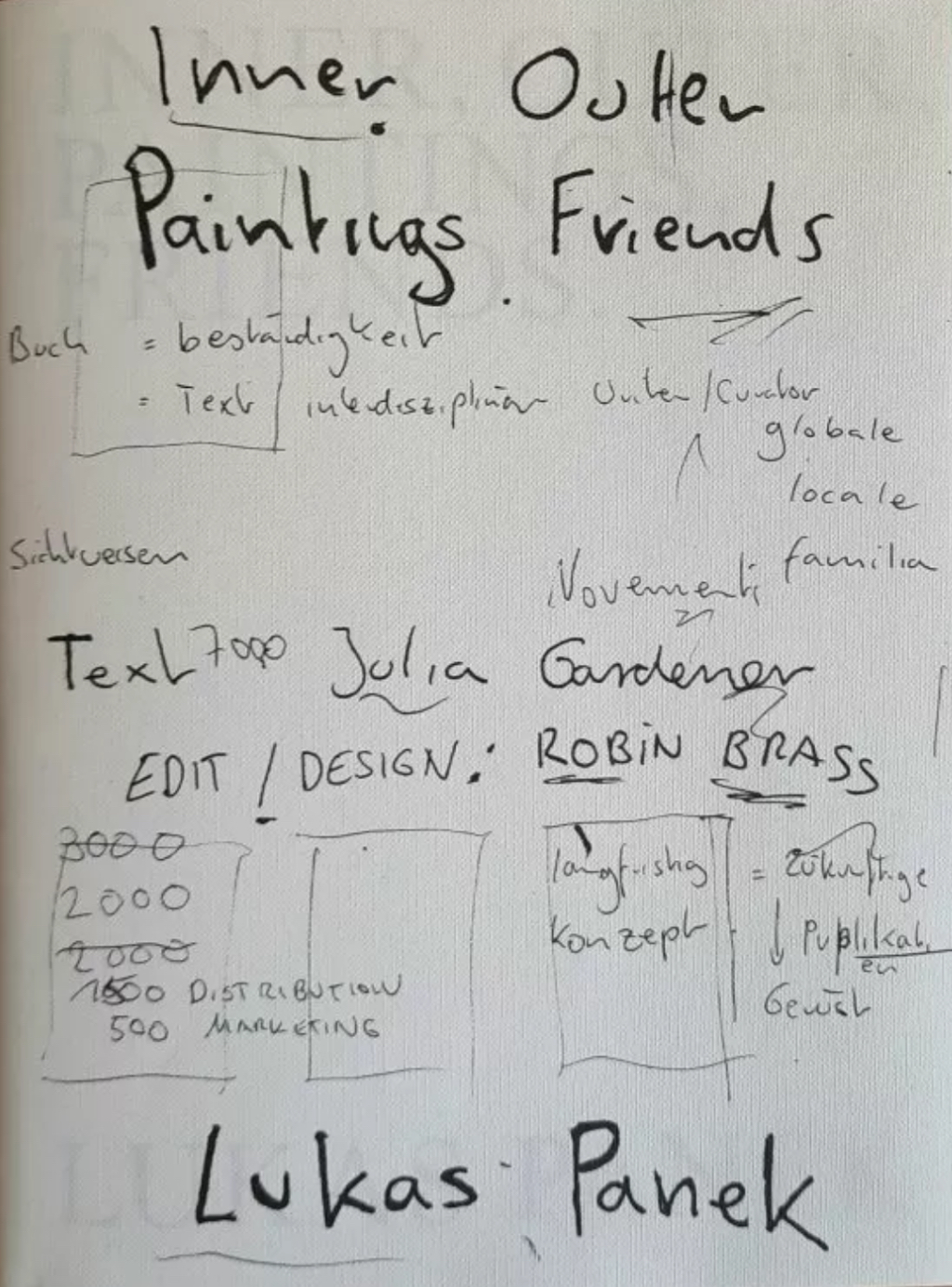 Au travers de cette exploration, qui constitue son terrain de jeu, il documente la variété des représentations dans la culture en ligne d’aujourd’hui. Les registres se mêlent et créent des récits ambigus. Par ce processus, les formes familières de narration sont délibérément sapées et le lecteur se trouve plongé et entraîné parmi le flux des images.Inner, Outer, Paintings, Friends regroupe ainsi plus de 500 images et présente dans sa seconde partie les toiles de Lukas Panek. Sélections parmi ce flux, elles sont à la fois extraits d’une expérience globale et commune à tous, et reflet d’un monde personnel.