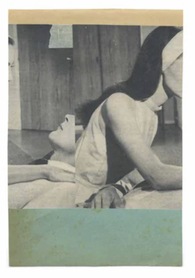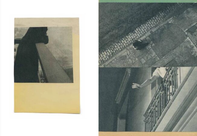 Son travail évoque, par ailleurs, le silence inquiet d’un film d’Antonioni — les tensions informulées qui s’accumulent en marge de l’image, des corps tenus en suspension. Dans ses collages règne ainsi l’atmosphère feutrée, troublée et sensuelle du cinéma des années 1950. Comme dans le film noir, ce n’est pas l’action qui compte, mais l’attente. Pas le dialogue, mais les regards évités. Les femmes, souvent fragmentées, deviennent donc des présences fantomatiques — à la fois désirées et insaisissables.
