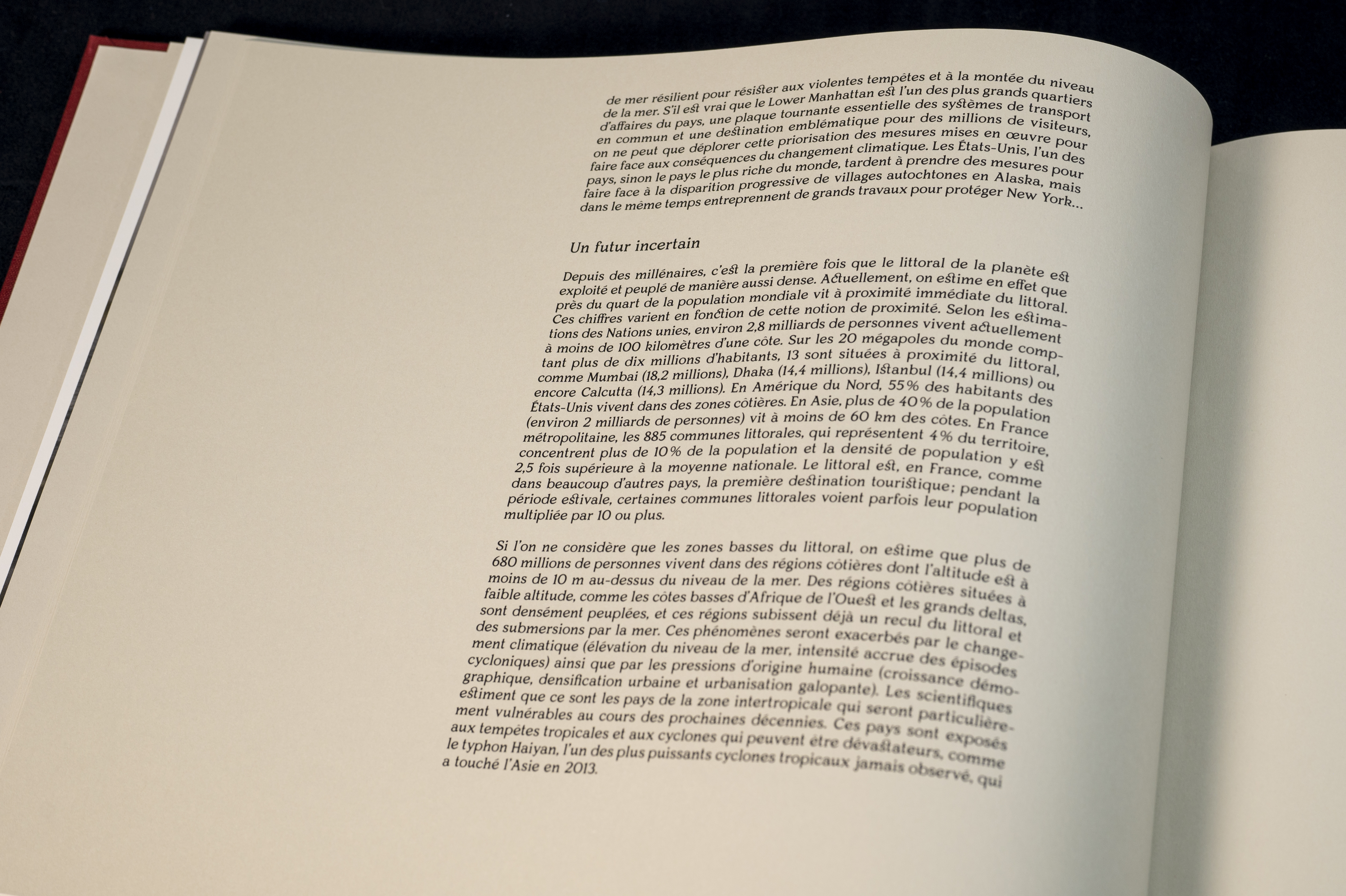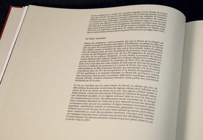 Les photographies de Felipe Fittipaldi nous immergent dans le quotidien et le paysage d’une population subissant de plein fouet la montée des eaux, tandis que Marie-Hélène Ruz élargit notre point de vue. En tant que spécialiste du littoral, elle utilise son expertise et les outils de sa discipline pour expliquer un tel phénomène sur le temps long : celui de l’évolution des paysages et des rapports que l’homme entretient avec son milieu.