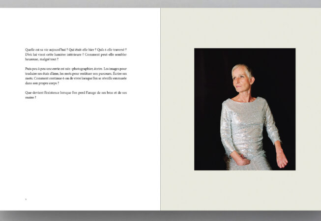 Entre 2018 et 2023, Estelle Lagarde réalise de nombreuses séances dans l’environnement quotidien de Karine. Les images, conçues selon une démarche respectueuse et collaborative, sont réalisées en argentique. Elles s’appuient sur les récits de Karine et prennent parfois une forme plus métaphorique, afin de traduire ses états d’âme, son vécu et ce qui ne se voit pas immédiatement.
