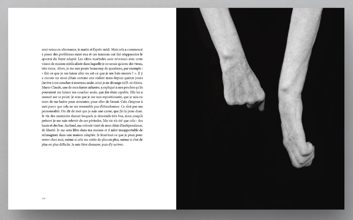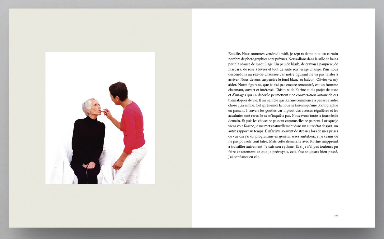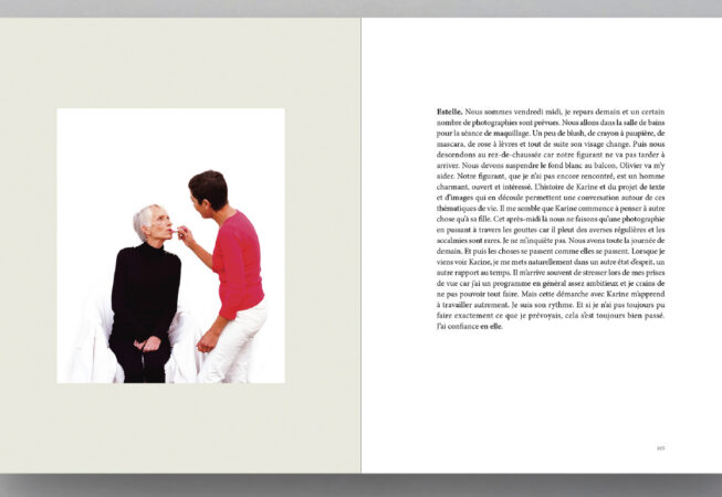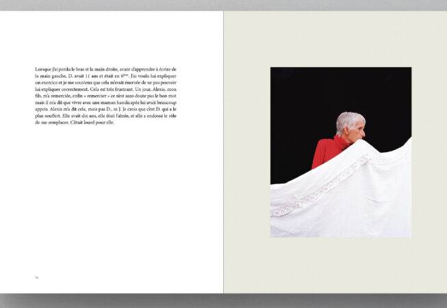 Mais La peau des autres Estelle Lagarde ne se limite pas à un travail photographique. Le projet associe aussi un important travail de transcription, nourri d’entretiens et de réflexions. Les mots sont ceux de Karine, de ses proches — sa mère, son père, ses frères, son fils — ainsi que ceux d’Estelle Lagarde elle-même. Cette pluralité de voix donne au livre une dimension sensible et chorale.