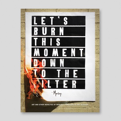 Let’s Burn This Moment Down To The Filter est la deuxième collection d’art créée par l’artiste de rue Morley, basée à Los Angeles. Alliant humour, espoir et son point de vue unique sur la vie, il se spécialise dans les affiches audacieuses et typographiques, qu’il colle dans le paysage urbain. Abstraction faite des limites légales et de la sécurité personnelle, l’engagement de Morley à offrir espoir, humour, poésie et sagesse est littéralement exposé dans chacune de ses œuvres.