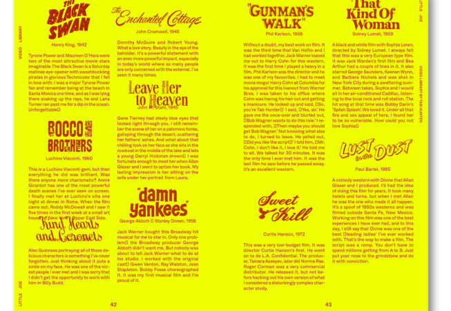 Pour la première fois, ce matériel rare et de collection sera disponible dans une publication qui rendra également hommage à l’esthétique DIY Risograph du journal. Il comprend des essais de John Waters, Sarah Schulman, Erika Balsom, Peter Stickland, Ira Sachs, Tobi Haslett, Liz Rosenfeld, Terence Davies et bien d’autres encore. Cet ouvrage offre des perspectives rebelles sur tous les sujets, des films d’art obscurs aux films pornographiques en passant par les classiques hollywoodiens.