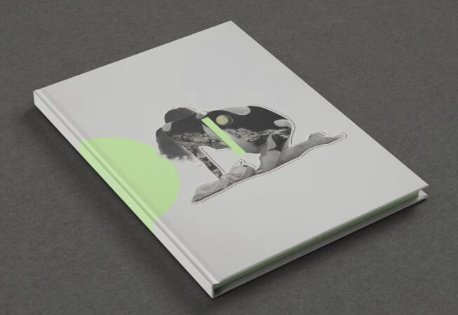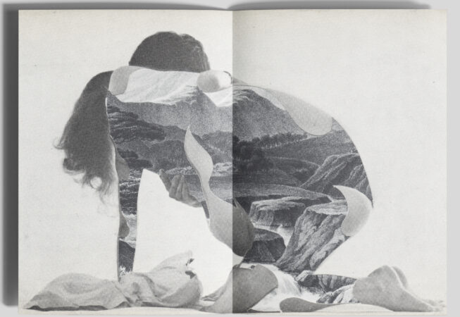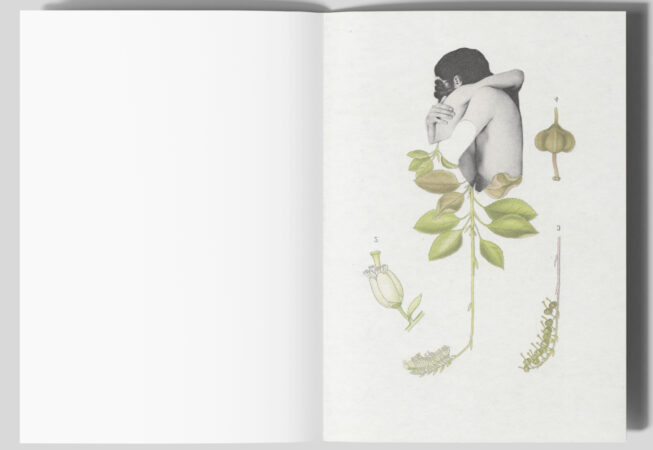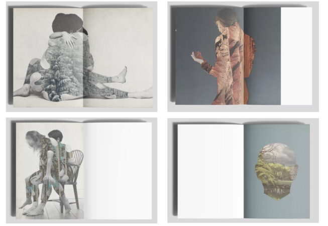 Ensomheden Vi Deler signifie en danois « La solitude que nous partageons ». C’est une méditation sur la fragilité des architectures humaines et les formes cachées du lien entre les êtres. Ainsi, 35 collages présentent deux amants dont les corps sont composés de motifs végétaux et naturels. Ils s’enlacent, se chevauchent, avec une sensualité douce et enveloppante. Par ailleurs, l’objet lui-même est soigné : reliure suisse, tranche verte fluo pantone, papier Freelife Vellum 120g. C’est donc bien plus qu’un livre — c’est une expérience tactile et visuelle.