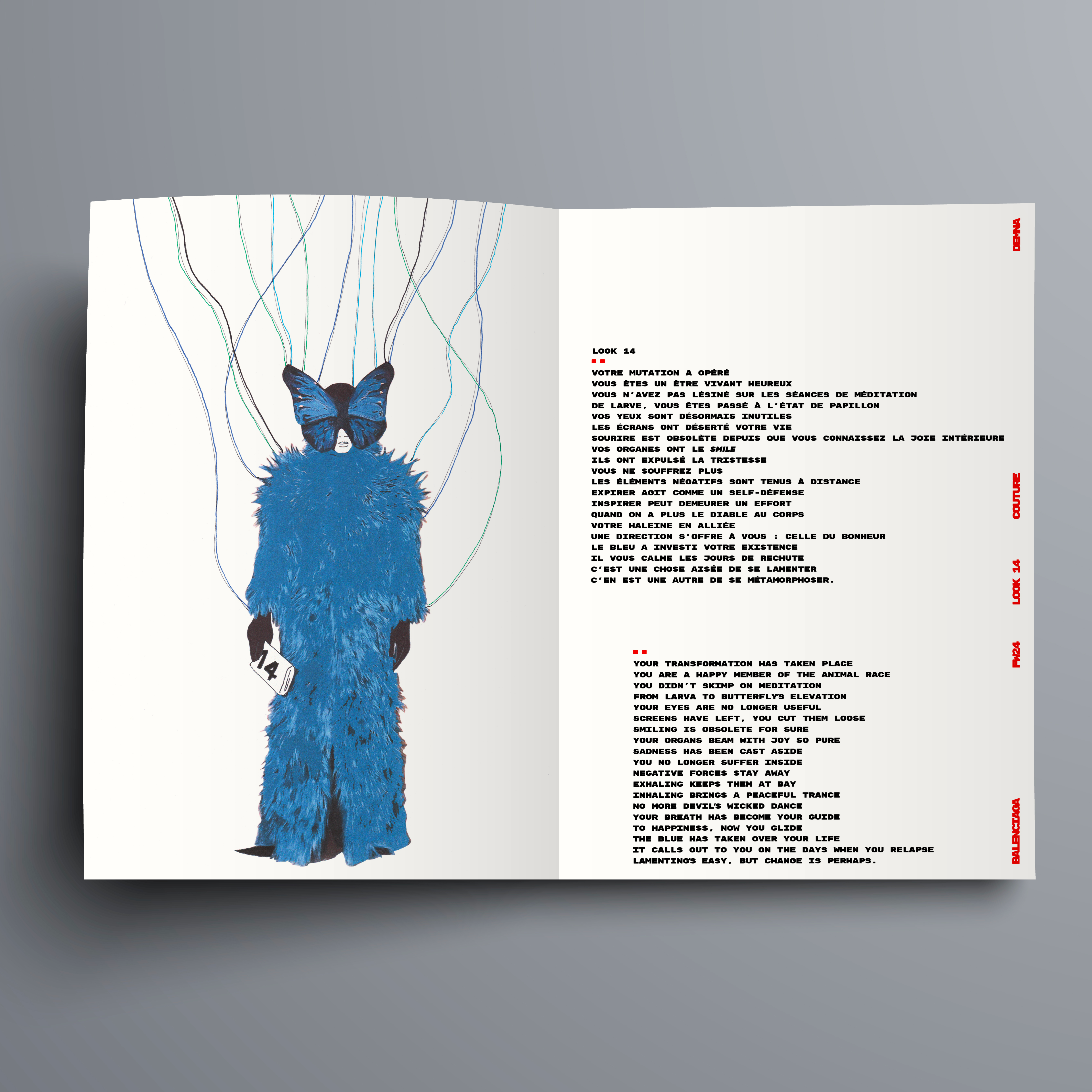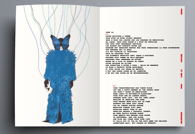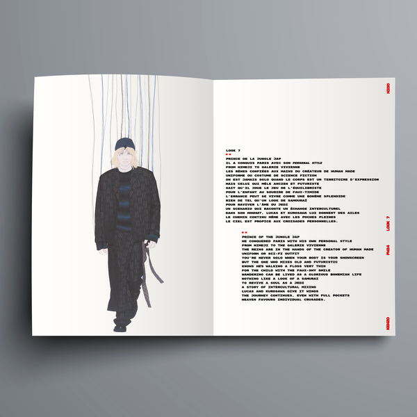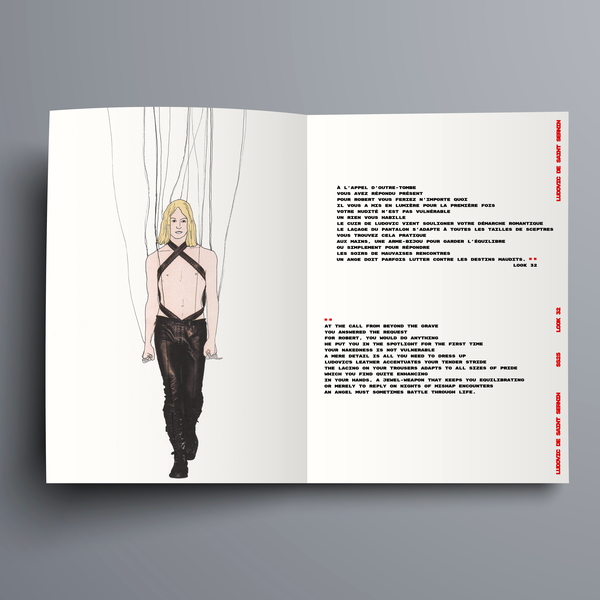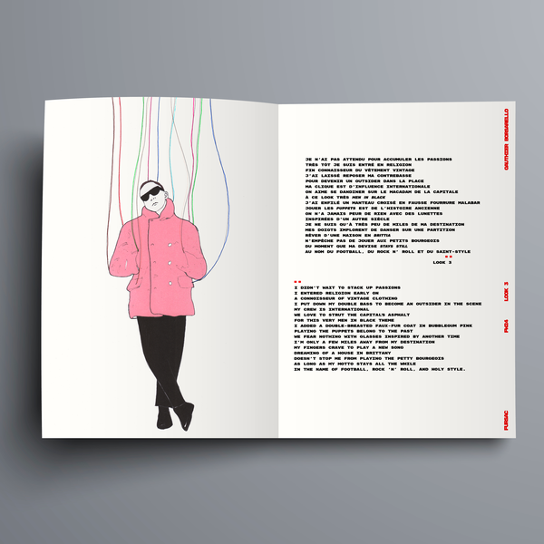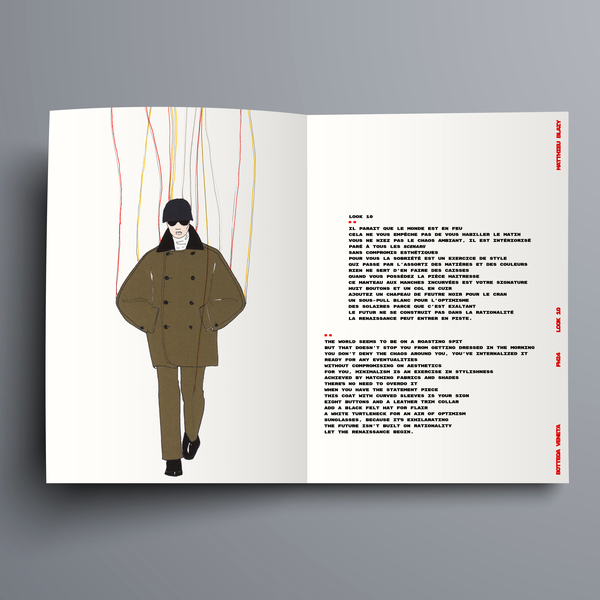 LOOK..POËM lie poésie & mode. Les meilleurs Looks des déflés SS24 FW24 SS25 accompagnés des poèmes de la jeune écrivaine Marie Wittmann. Un format graphique original, une composition sur le fil, mixant photo & dessin, transformant chaque silhouette en marionnette de sa propre fiction.