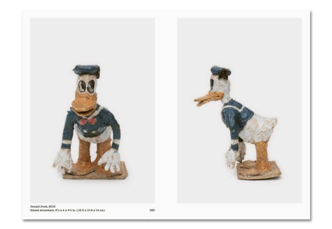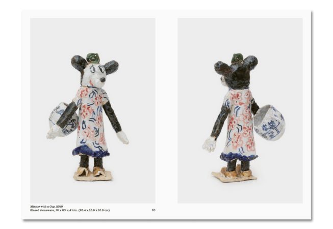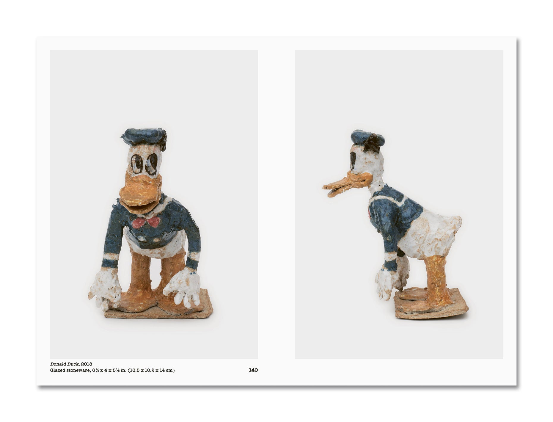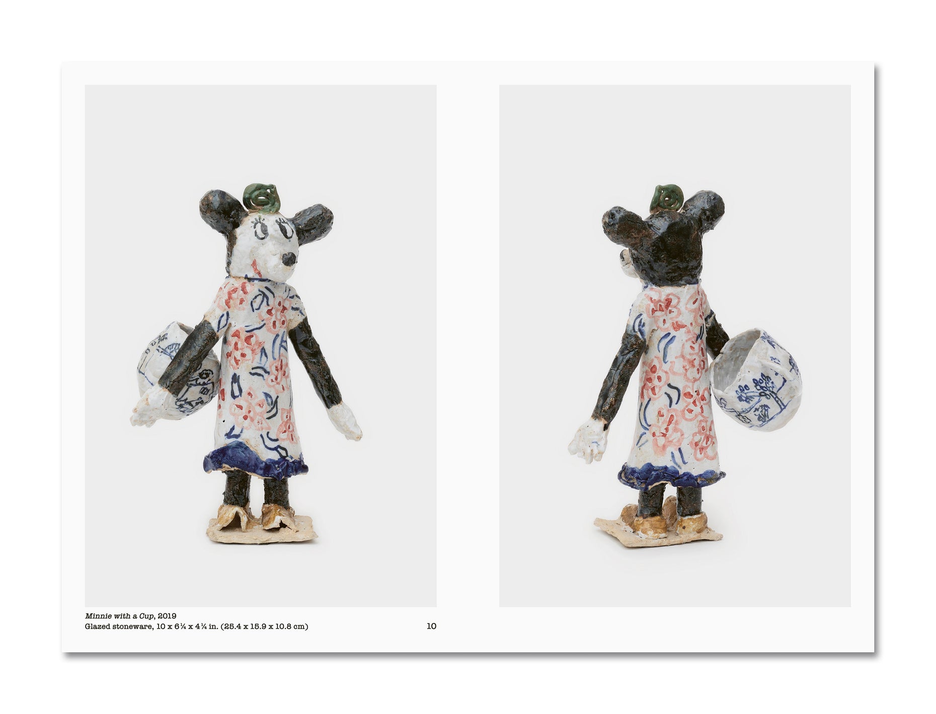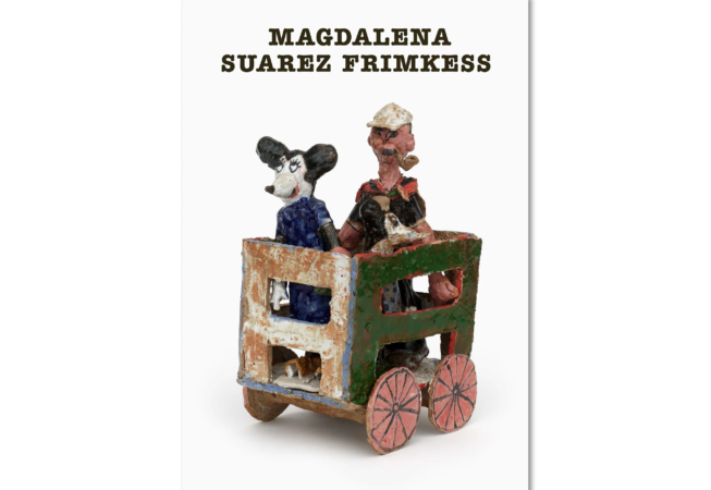 Cette publication rassemble plus de 140 œuvres réalisées au cours des vingt-cinq dernières années par l’artiste américano-vénézuélienne Magdalena Suarez Frimkess. Les sculptures en céramique fabriquées à la main de Frimkess sont ornées de décorations vives mêlant des figures mythologiques à des personnages de dessins animés dans des tableaux vivants. Parmi eux, Minnie et Mickey Mouse, Betty Boop, Popeye, Félix le chat et le héros chilien Condorito sont des personnages récurrents, tous tendrement mais étrangement rendus en grès émaillé et souvent dans des réimaginations surréalistes de leurs mésaventures familières.