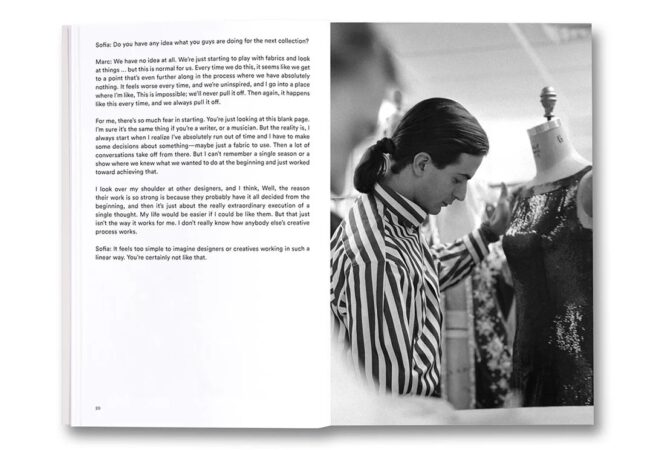 Des centaines de photographies personnelles et de matériaux de coulisses issus du studio de Jacobs complètent, en outre, cet ensemble. Ces documents inédits montrent l’artiste au travail, loin des projecteurs des défilés. C’est pourquoi ce livre s’impose comme une référence incontournable sur l’un des créateurs les plus influents de la mode contemporaine. Il fait partie de l’imprint Important Flowers de Sofia Coppola chez MACK Books.