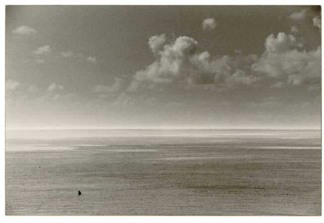 Nusa est le troisième et dernier volet d’une trilogie initiée en 2020 par IIKKI, construite autour du dialogue entre le photographe Masao Yamamoto et le compositeur Akira Uchida. Masao Yamamoto Nusa clôt, en effet, un cycle né avec la lumière (Sasanami, 2020), traversé par l’obscurité (Kurayami, 2023), et qui revient avec Nusa (2026) à l’ambivalence des deux. Leur coexistence et leurs complémentarités traversent, ainsi, les tonalités comme l’humanité en ces temps de contrastes.
