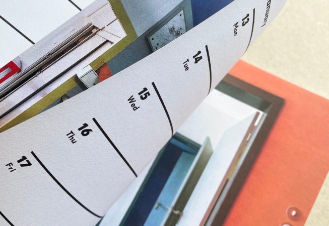 L’agenda est de format A5, et les feuilles internes sont du papier certifié FSC de 120 g/m2 fourni par G. F. Smith, sur lequel il est agréable d’écrire. Veuillez noter que notre public étant dispersé dans le monde entier, nous n’avons pas inclus les jours fériés locaux ou religieux. Nous avons inclus les phases de la lune.