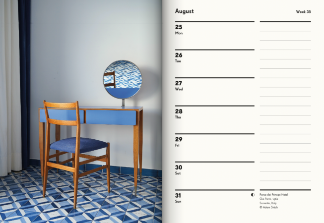 Notre semainier 2025 en édition limitée célèbre les intérieurs modernistes à travers l’Europe. Avec des photographies d’intérieurs emblématiques et moins connus prises par certains des plus grands photographes d’architecture d’aujourd’hui, ce semainier unique et élégant allie la fonction et la forme. L’agenda est cousu à plat et imprimé en lithographie sur du papier soigneusement sélectionné par l’un des imprimeurs européens les plus respectueux de l’environnement. Conçu pour une utilisation quotidienne et une possession à long terme.