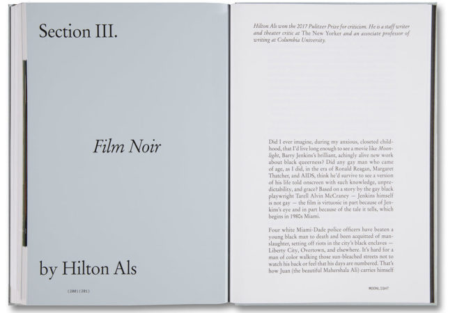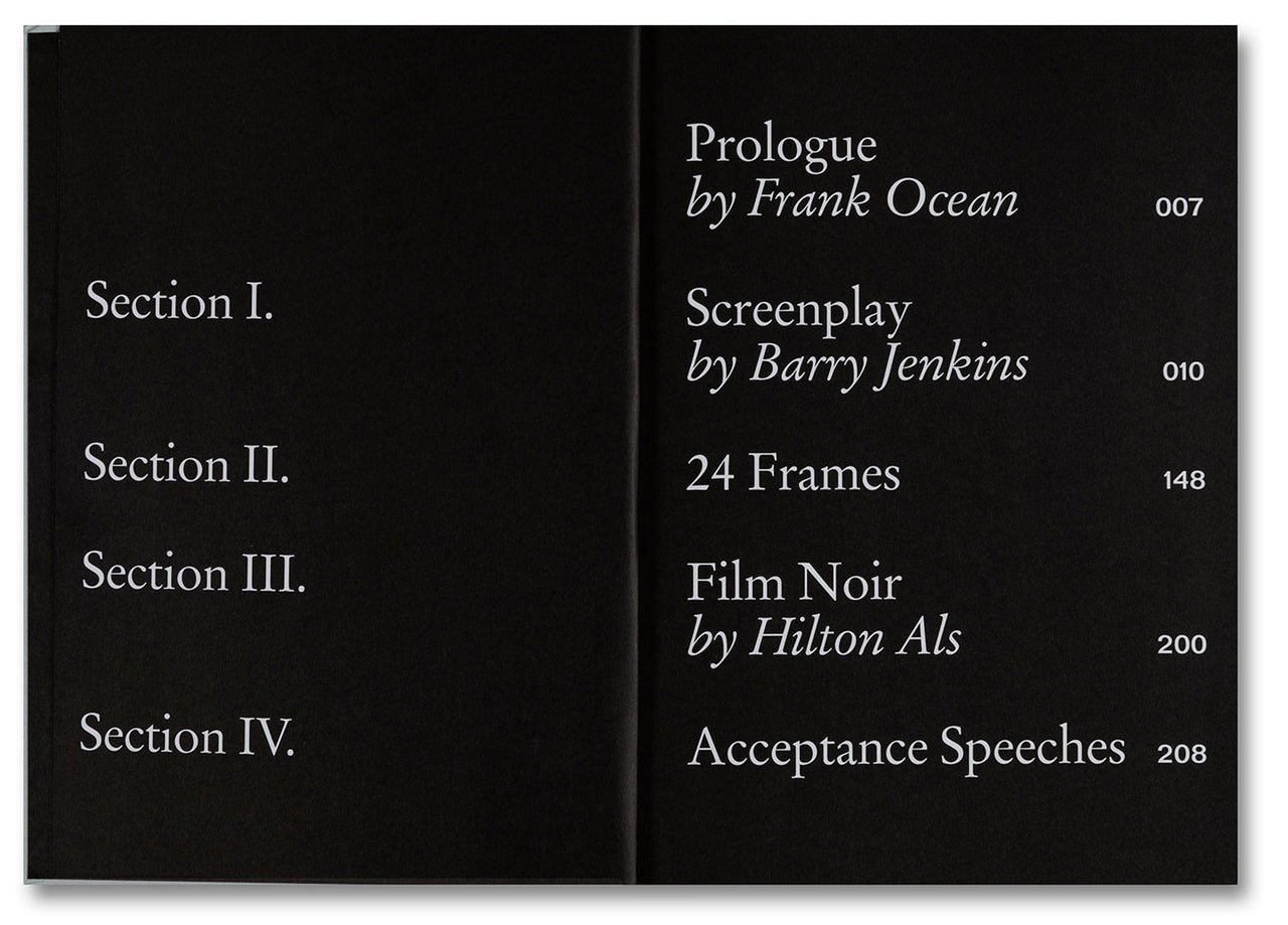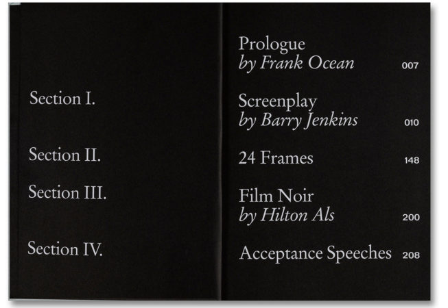 Avec une préface de Frank Ocean, le scénario de Barry Jenkins et Tarell Alvin McCraney, récompensé aux Oscars, comporte un essai de Hilton Als et les discours d’acceptation de la soirée historique des Oscars de Moonlight.
