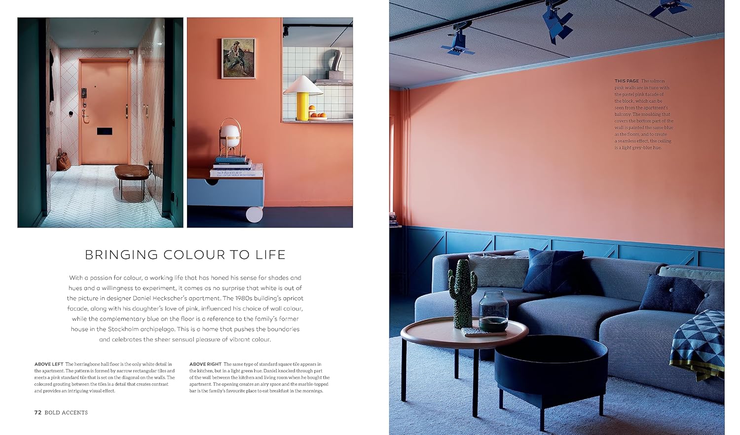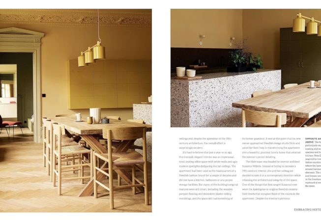 Le style “Dark Eclectic” se caractérise par des teintes profondes et intenses : bleu crépuscule, gris orage, vert forêt et indigo, toutes inspirées des tons les plus dramatiques du paysage nordique. La rubrique “Accents audacieux” met l’accent sur les détails qui donnent du caractère aux lieux, comme les buissons de baies d’un rouge profond ou les teintes rousses des forêts de bouleaux du Nord à l’automne. Enfin, dans “Majestic Pastels”, Antonia donne un aperçu des intérieurs décorés avec des pastels forts mais subtils pour un effet remarquablement moderne.