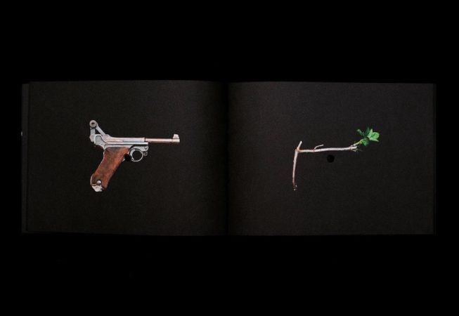 Un trou traverse l’ouvrage, comme un impact de balle. Ce geste fait du livre un objet blessé, témoin silencieux du traumatisme. Pourtant, l’ensemble porte un message de résistance : les images peuvent préserver la mémoire et redonner du sens.