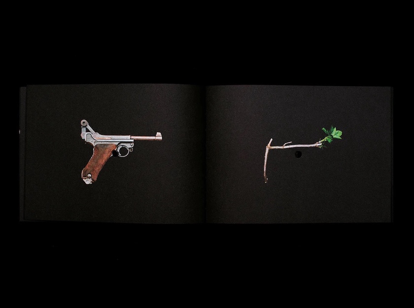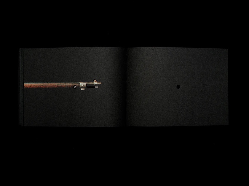 Un trou traverse l’ouvrage, comme un impact de balle. Ce geste fait du livre un objet blessé, témoin silencieux du traumatisme. Pourtant, l’ensemble porte un message de résistance : les images peuvent préserver la mémoire et redonner du sens.