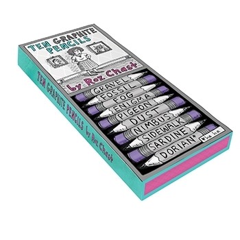 gold foil-stamped box tray with sleeve, 10 sharpened pencils (5 designs) with gold foil-stamping and erasers