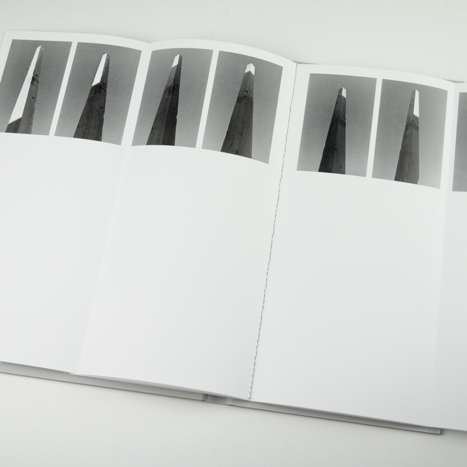 Chacune porte les effets d’une discrète métamorphose, dont le ressort principal tient dans la perte d’échelle : pignons d’immeubles transmués en pyramides, cheminées dilatées à la taille d’un bâtiment, modénatures des années 30 prenant des accents de temple Maya. Les tonalités de gris sont d’une subtilité remarquable, entretenues par les grandes plages unies que dégagent ses formes géométriques. »