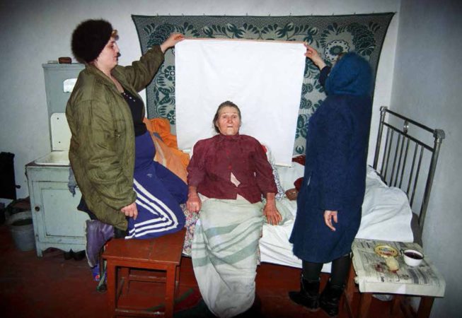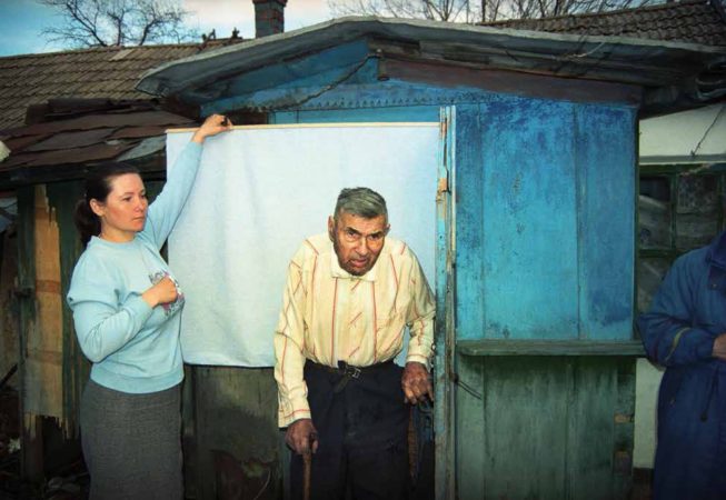 Le photographe ukrainien Alexander Chekmenev a été l’un de ceux qui ont accepté la mission de faire du porte-à-porte pendant cette campagne de nationalisation des passeports. Il a accompagné les agents des services sociaux dont le travail consistait à fournir gratuitement des médicaments et des produits d’épicerie aux personnes dans le besoin. Il a ainsi créé une œuvre impressionnante sur l’Ukraine rurale et ses difficultés, qui n’est pas sans rappeler les documents de Mikhailov sur les personnes vivant en marge de la société.